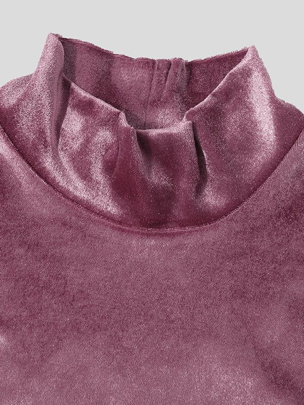 Men Suede High Neck Long Sleeve T-Shirt