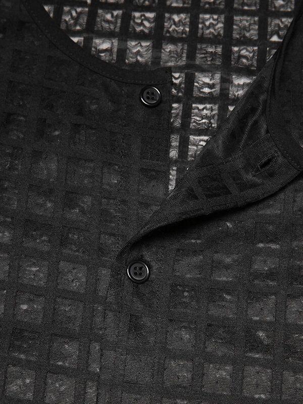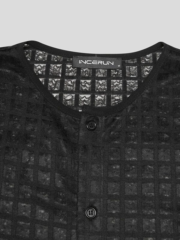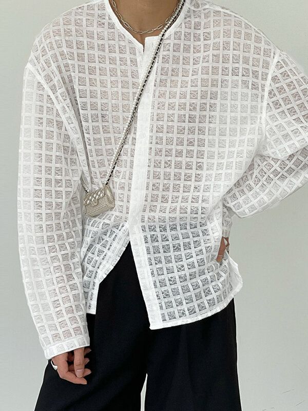 Mens Casual Mesh Check Long-sleeved Shirts