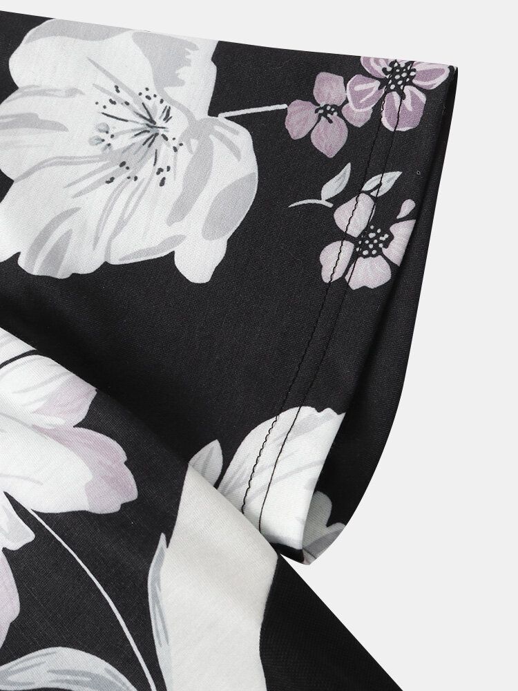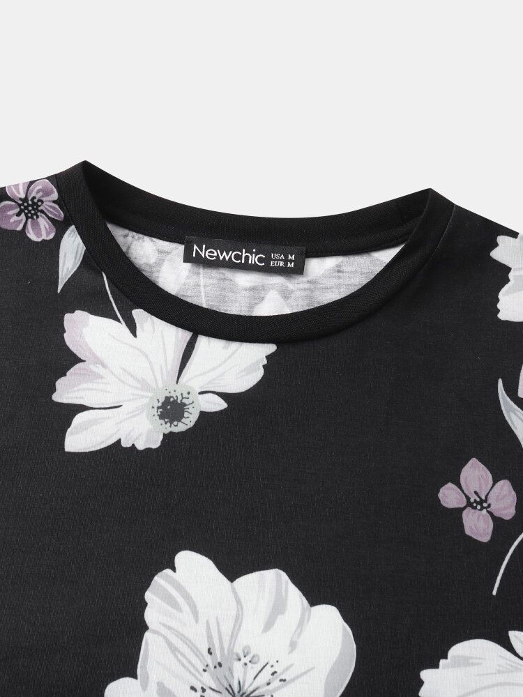 Mens Floral Print Black Crew Neck Short Sleeve Street T-Shirt