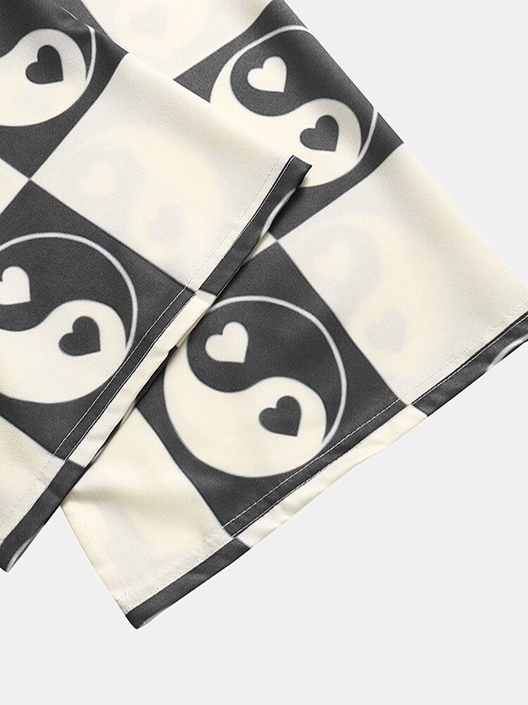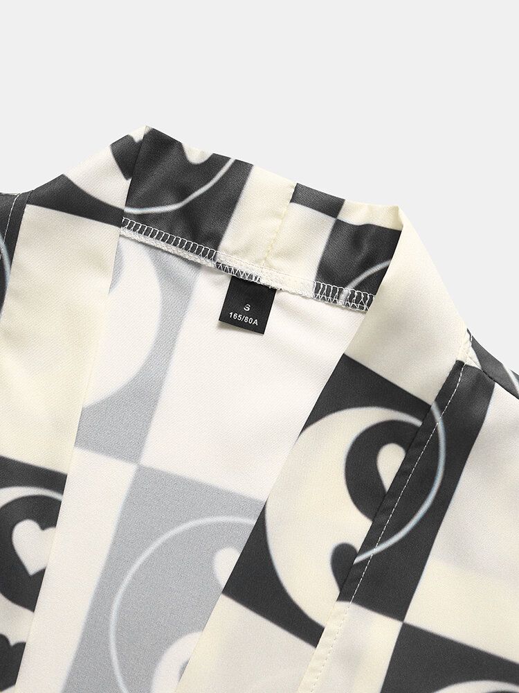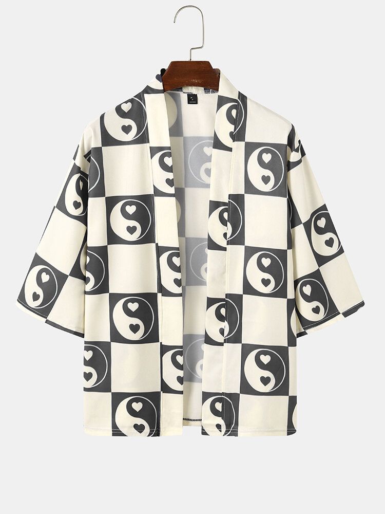 Mens Heart Yin Yang Pattern Open Front Casual Loose Kimono