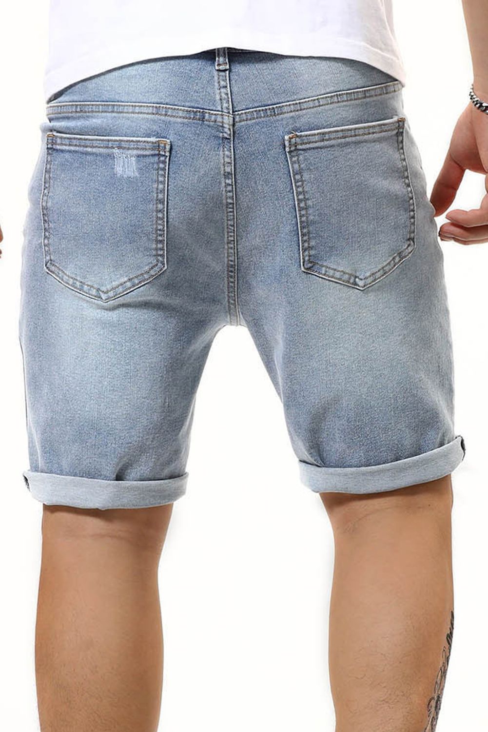 Sky Blue It's In My DNA Basketball Print Ripped Rolled Hem Men's Denim Shorts