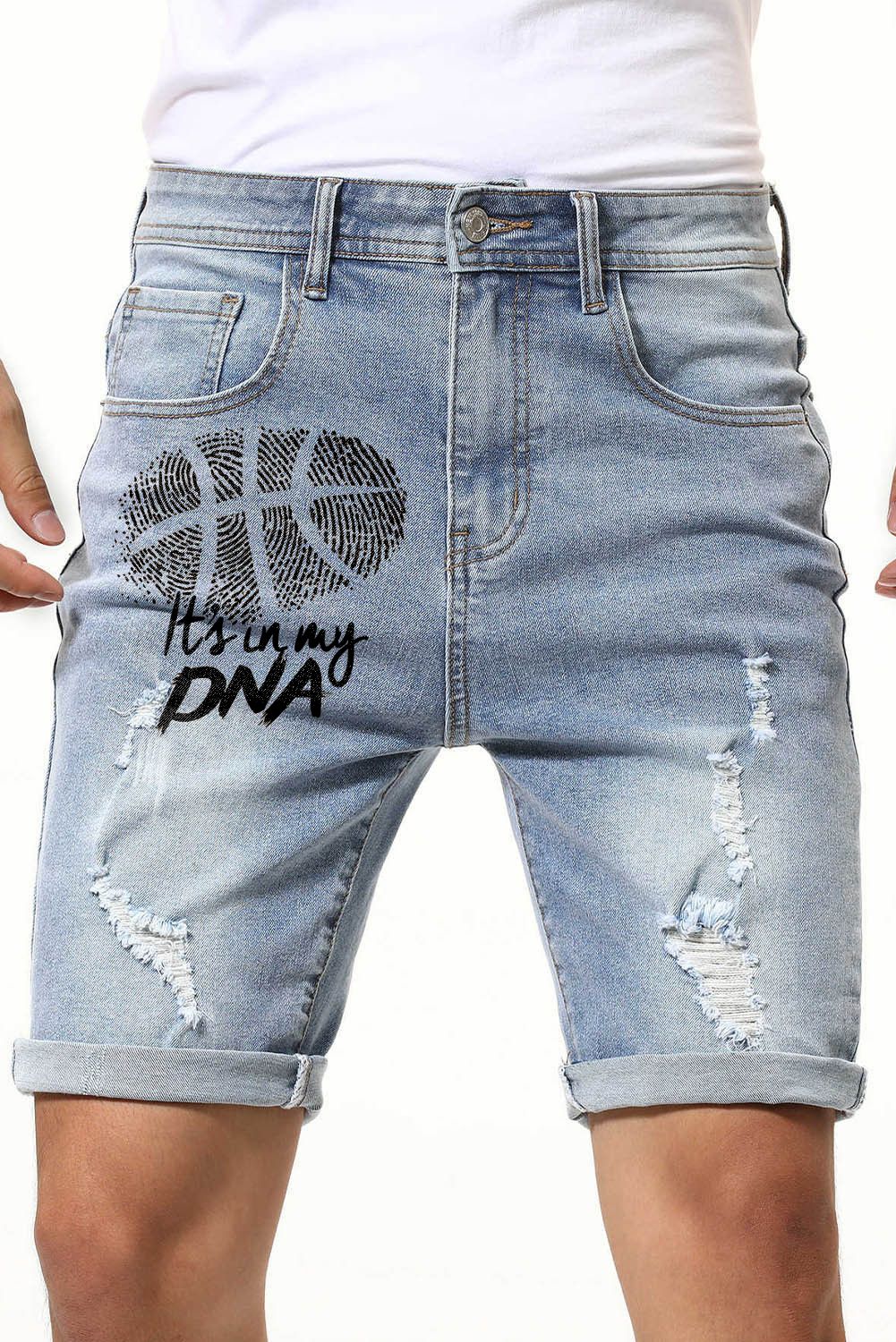 It's In My DNA Basketball Print Ripped Rolled Hem Men's Denim Shorts