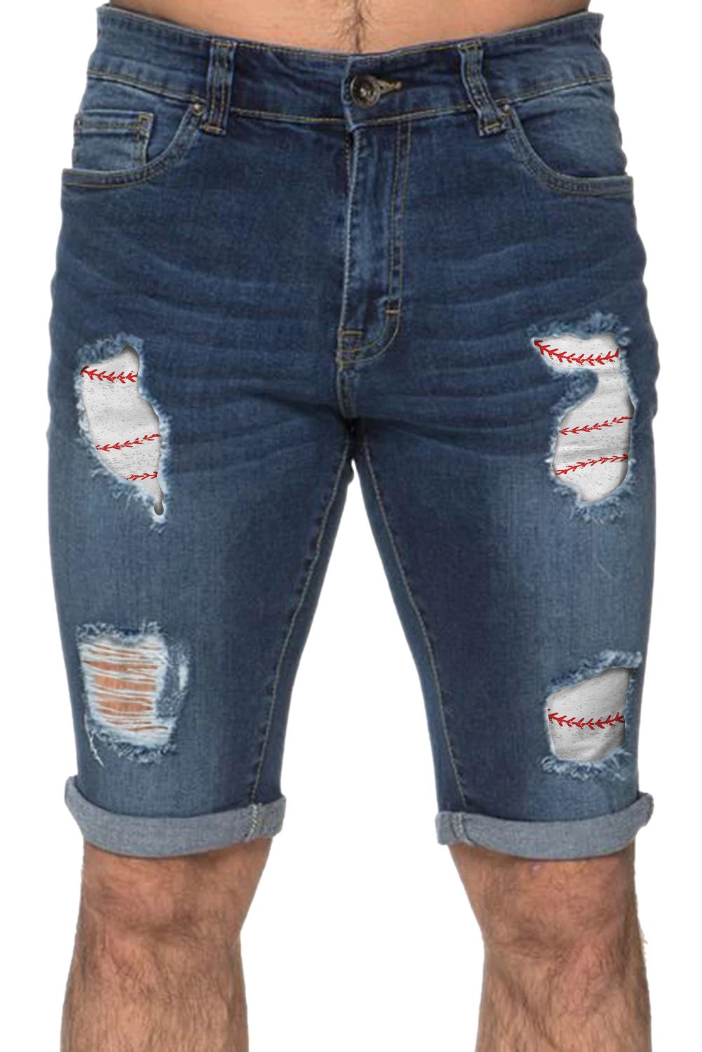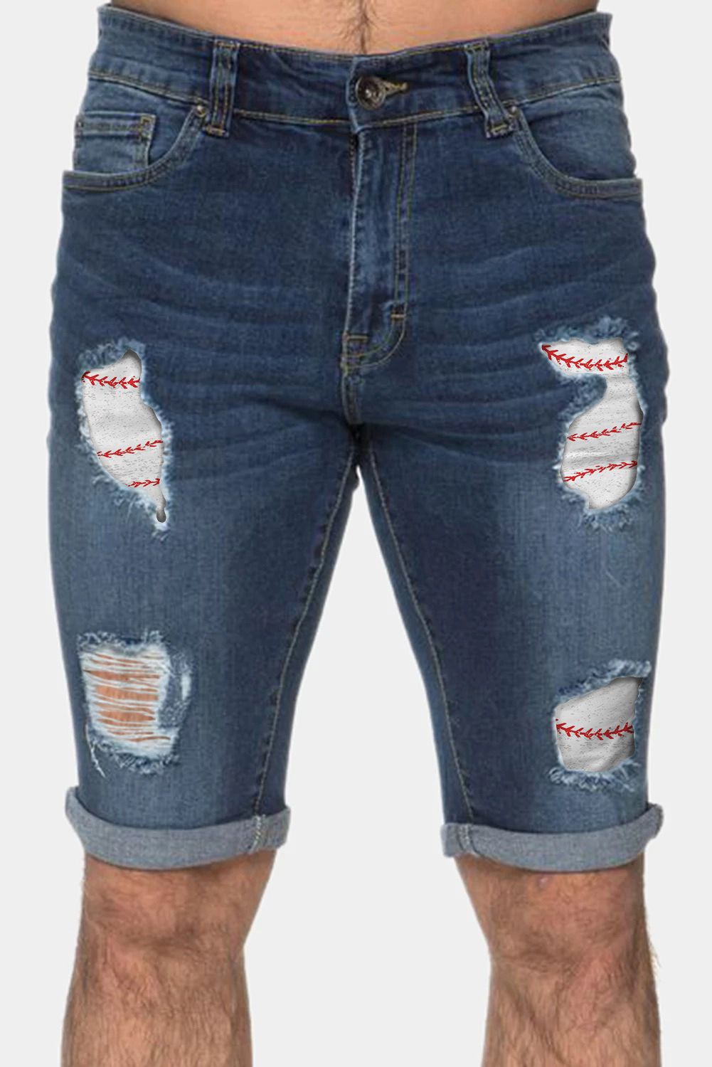 Men's Baseball Pattern Patchwork Skinny Distressed Jeans
