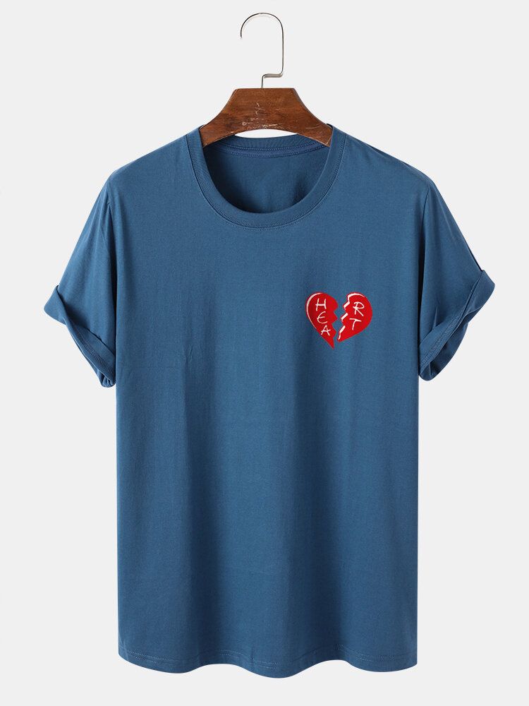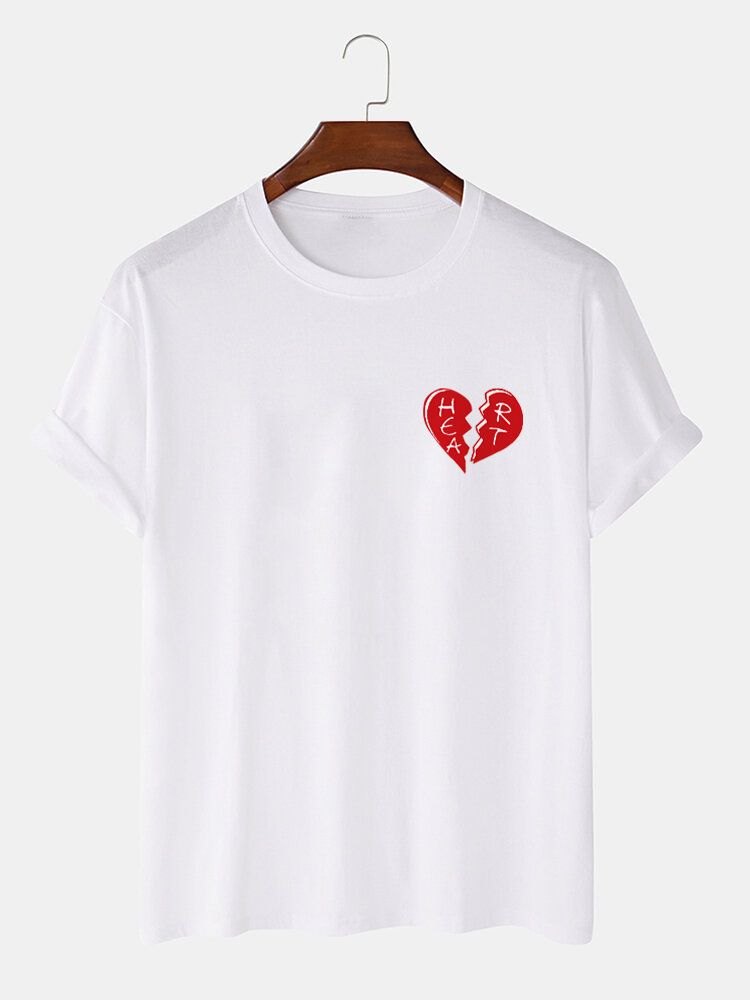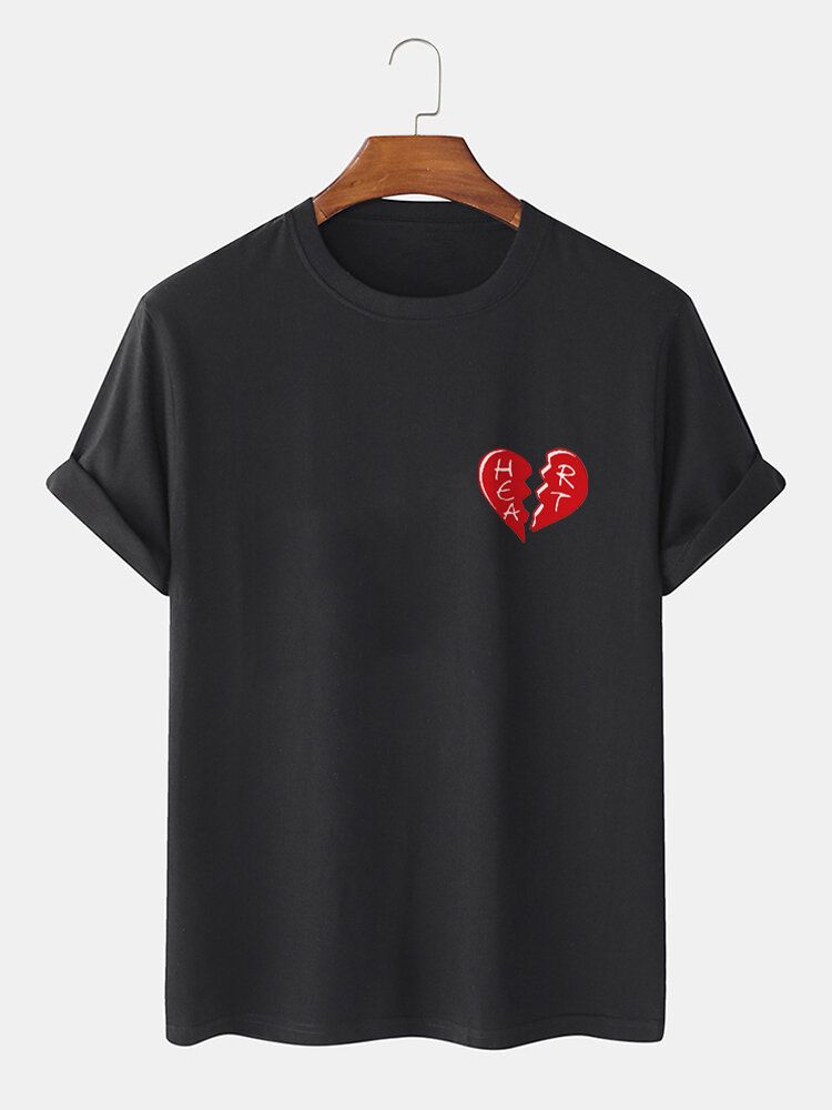 Mens 100% Cotton Heart Graphics Casual Short Sleeve T-Shirt
