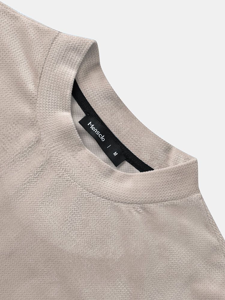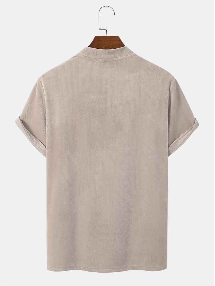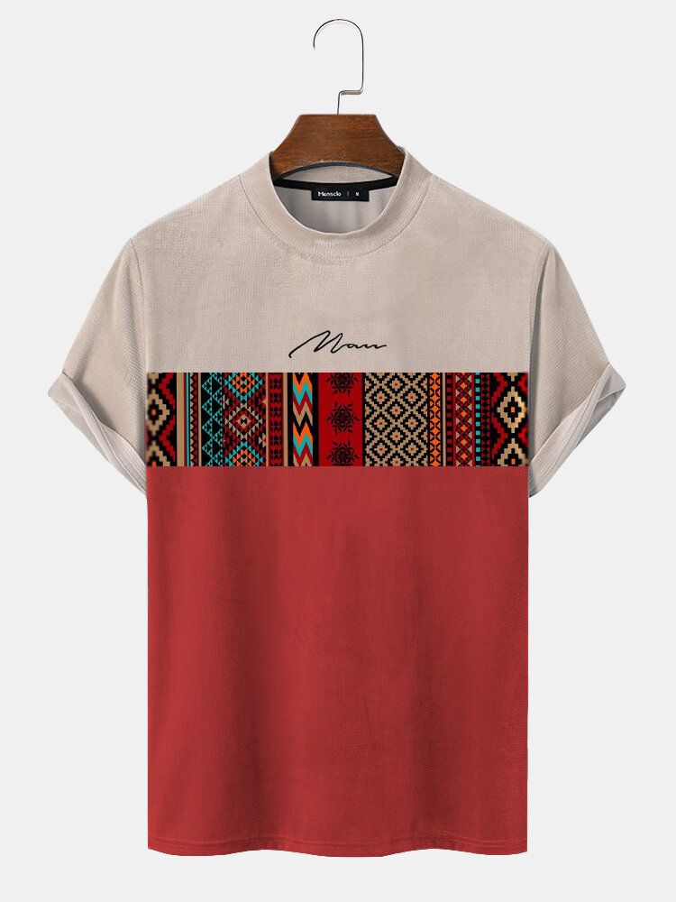 Mens Vintage Geometric Pattern Patchwork Mock Neck Short Sleeve T-Shirts