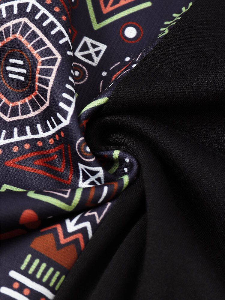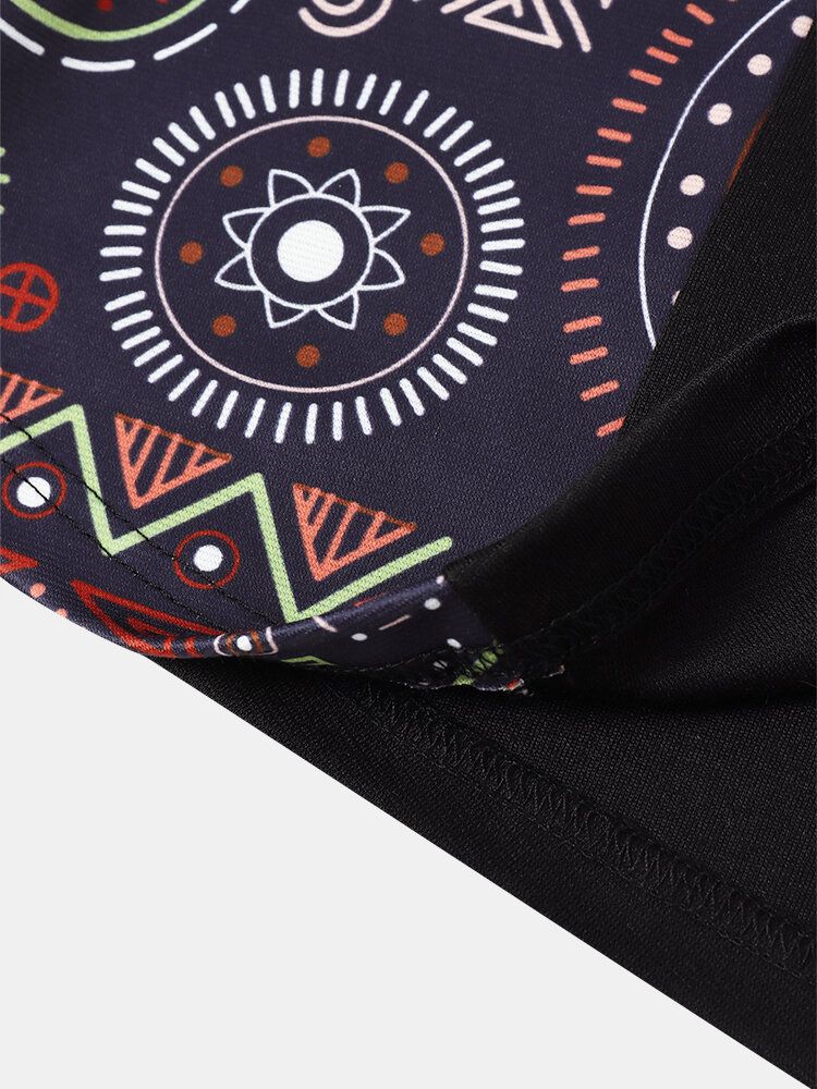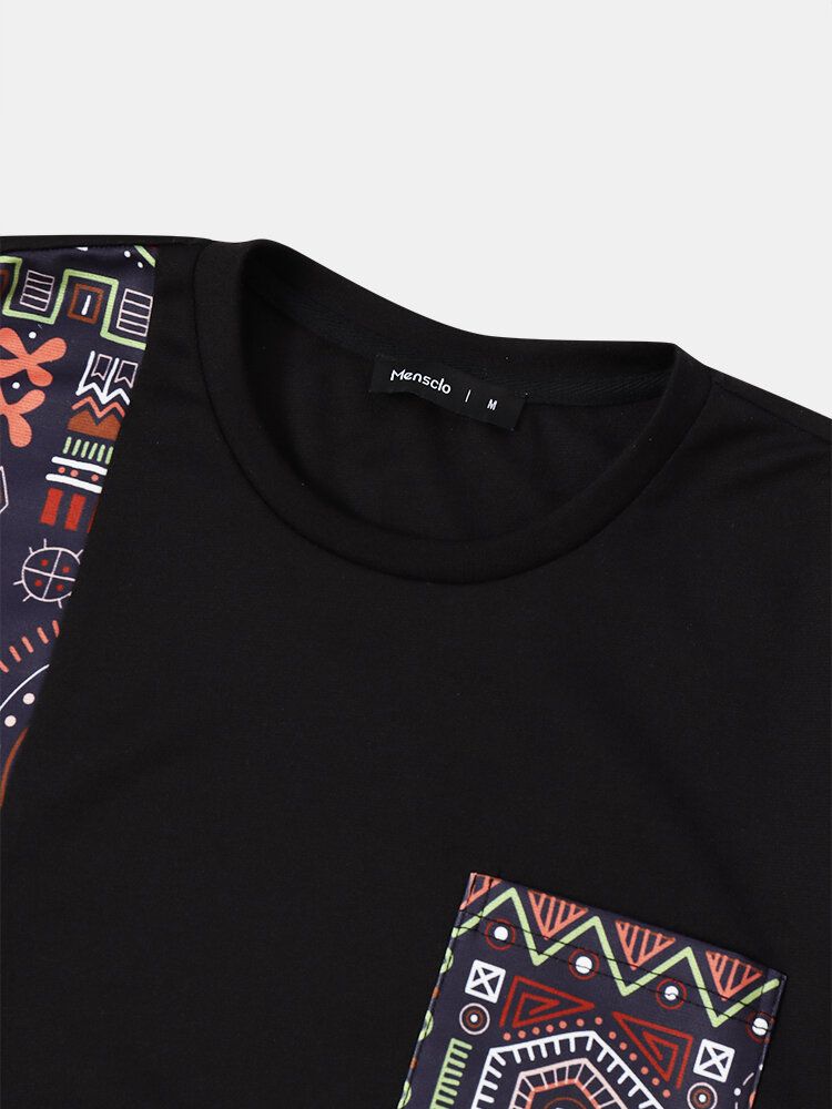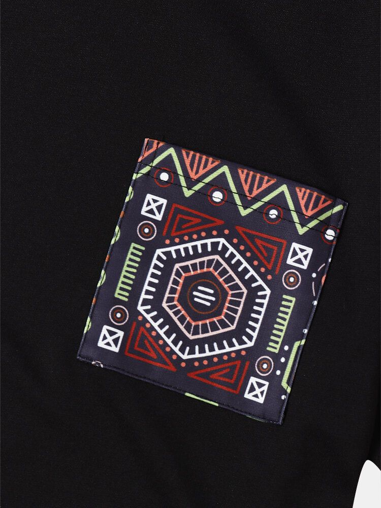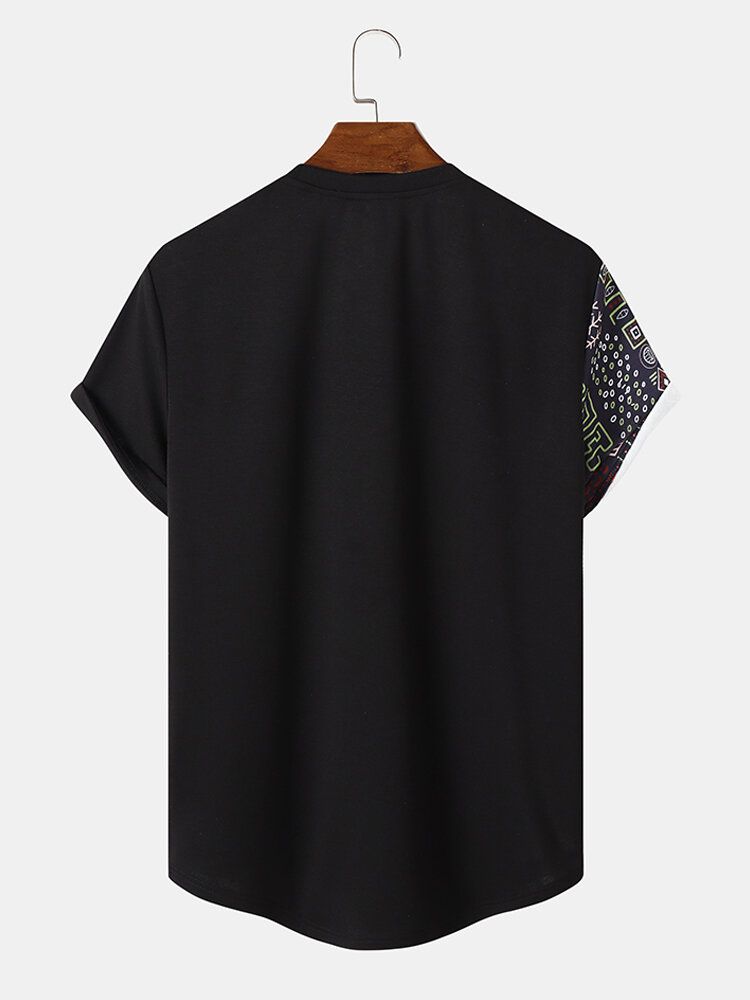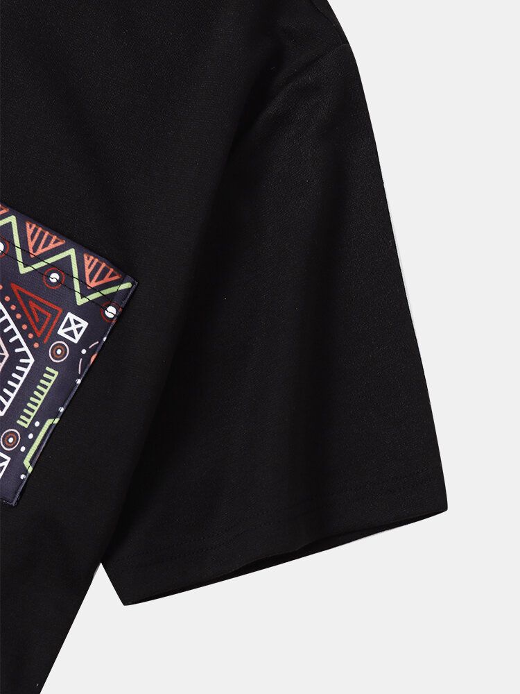 Mens Vintage Geometric Print Patchwork Curved Hem Short Sleeve T-Shirts