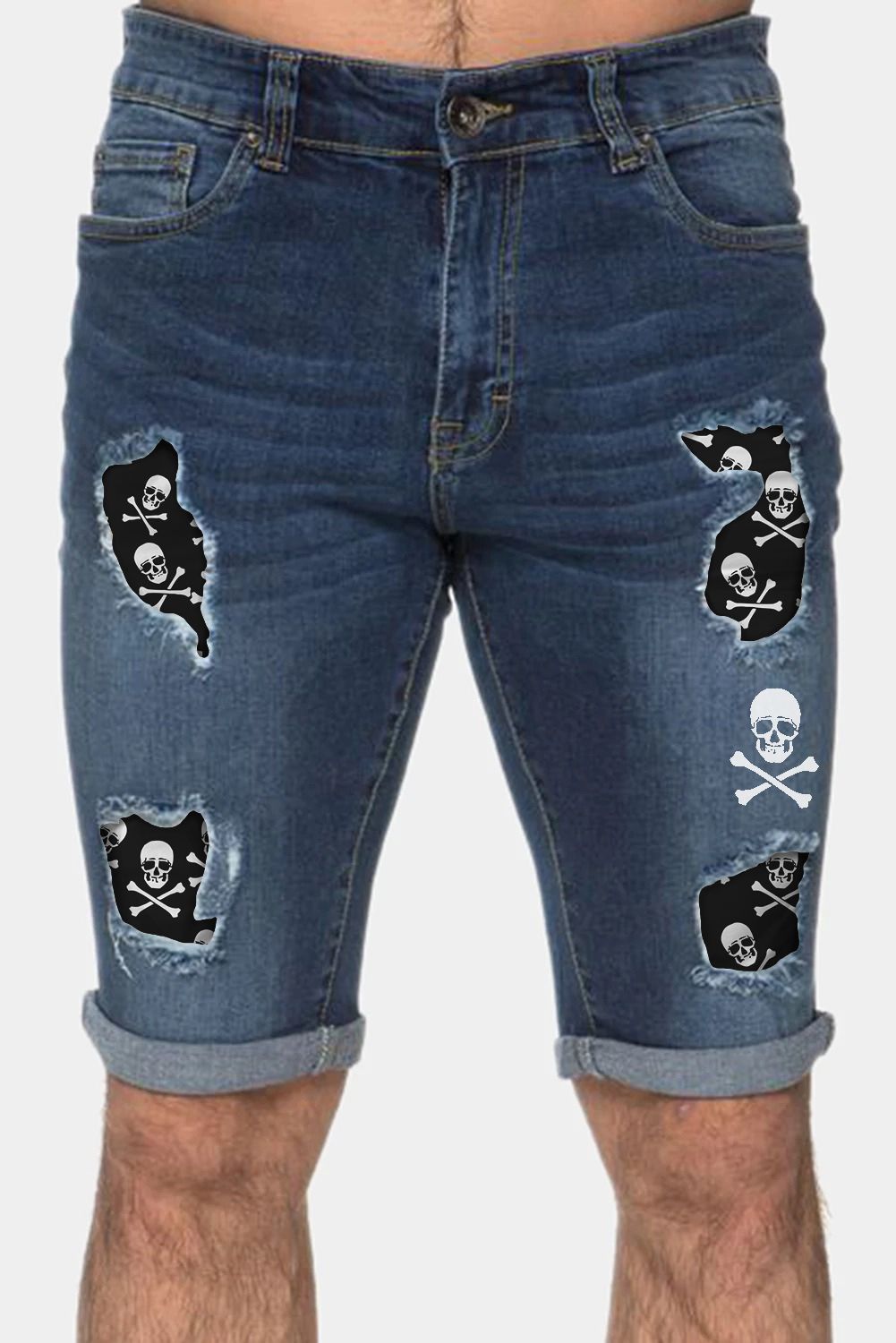Skull Graphic Patchwork Distressed Skinny Fit Men's Jeans