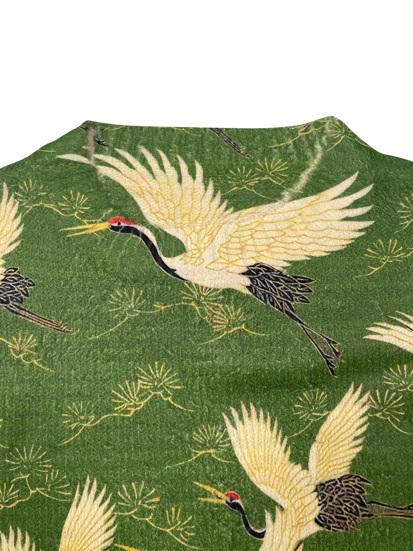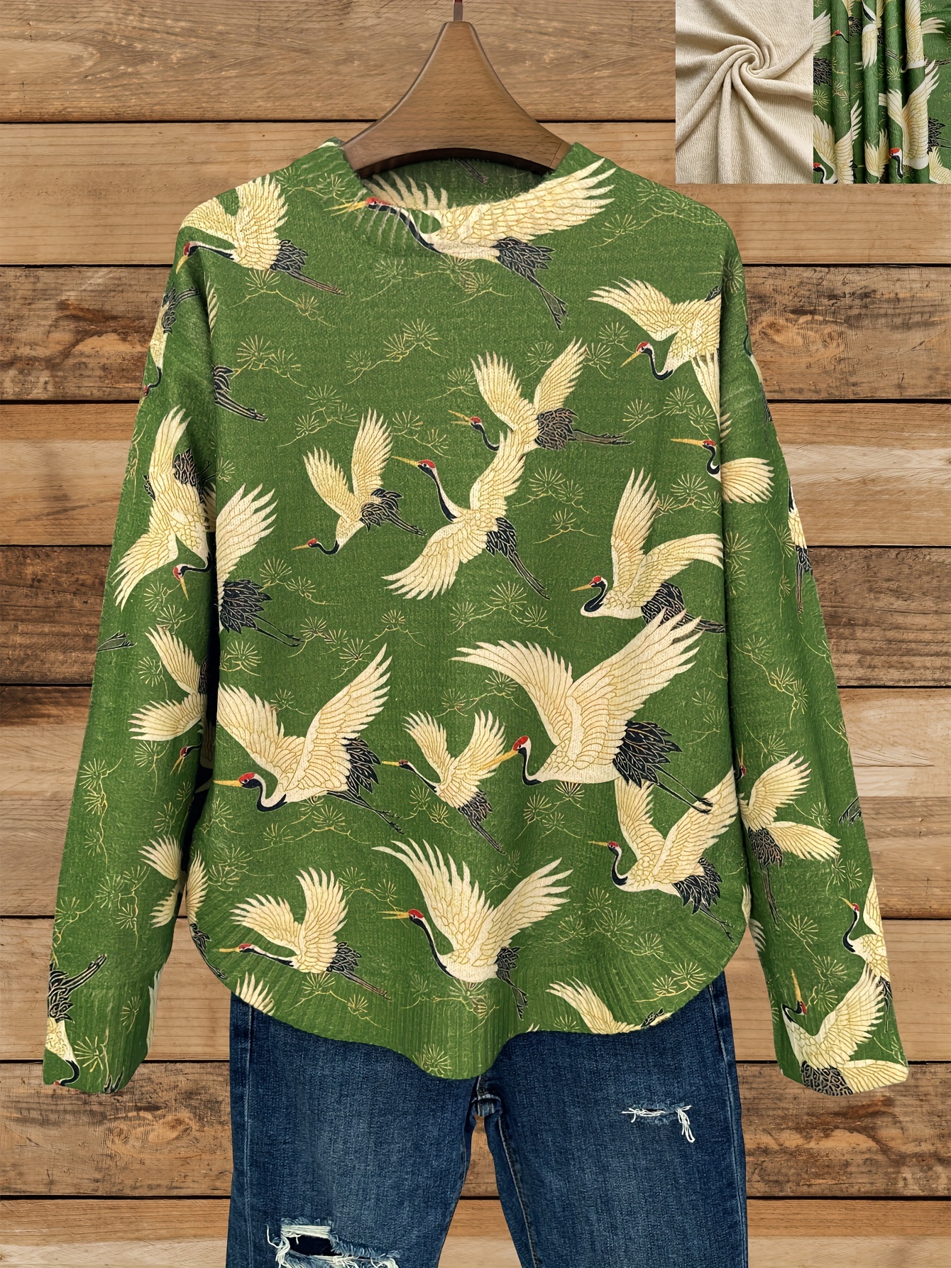 [All-Over Print] [Thick] [Round Hem] [Sweater] All-Over Print Red-crowned Crane Pattern Thick, Casual Crew Neck Long Sleeve Sweater, Round Hem, Women's Clothing
