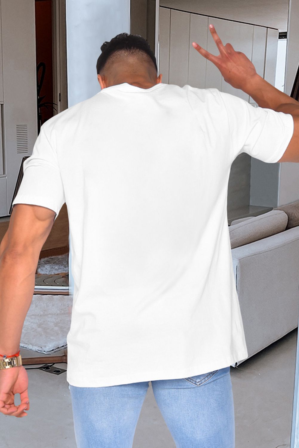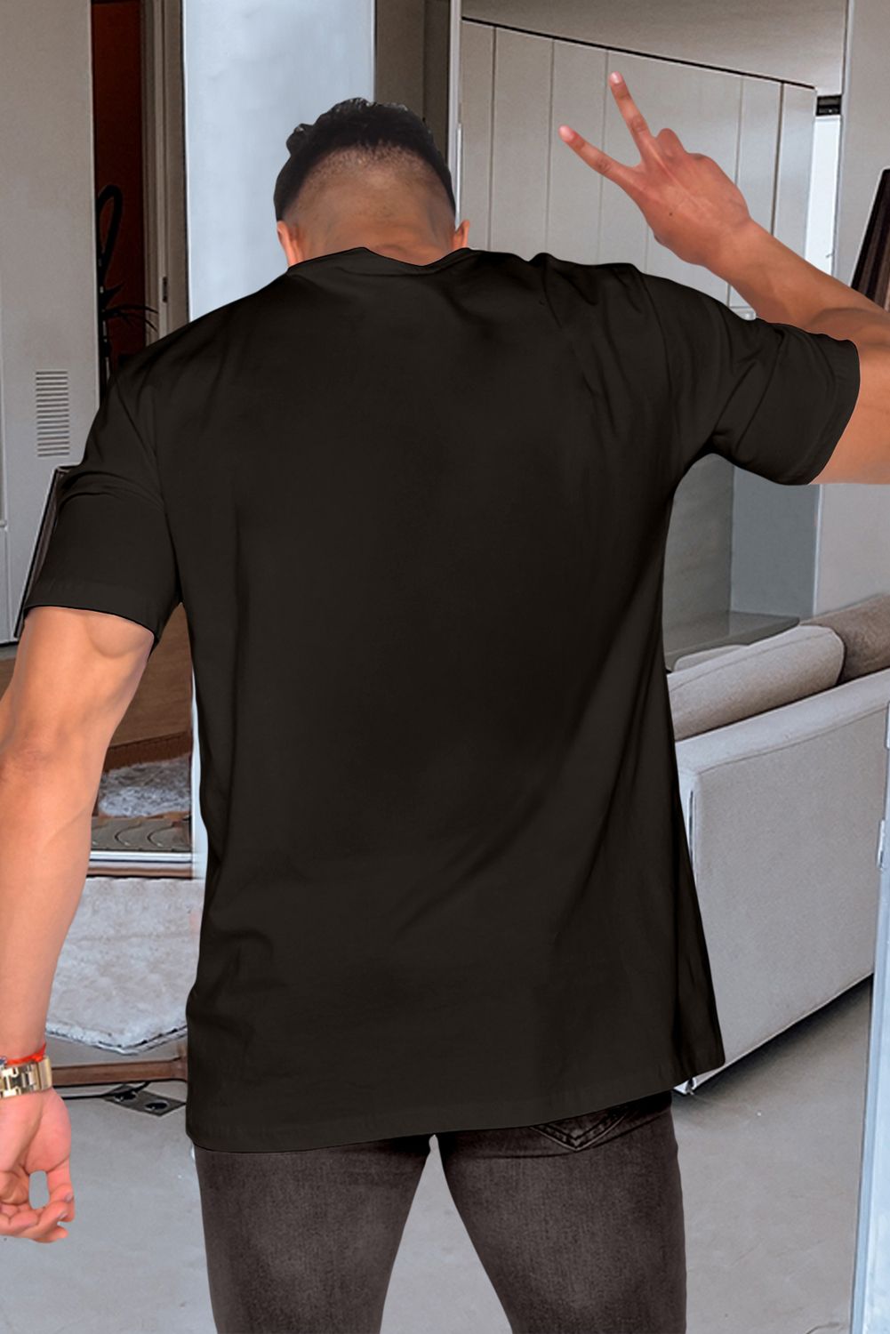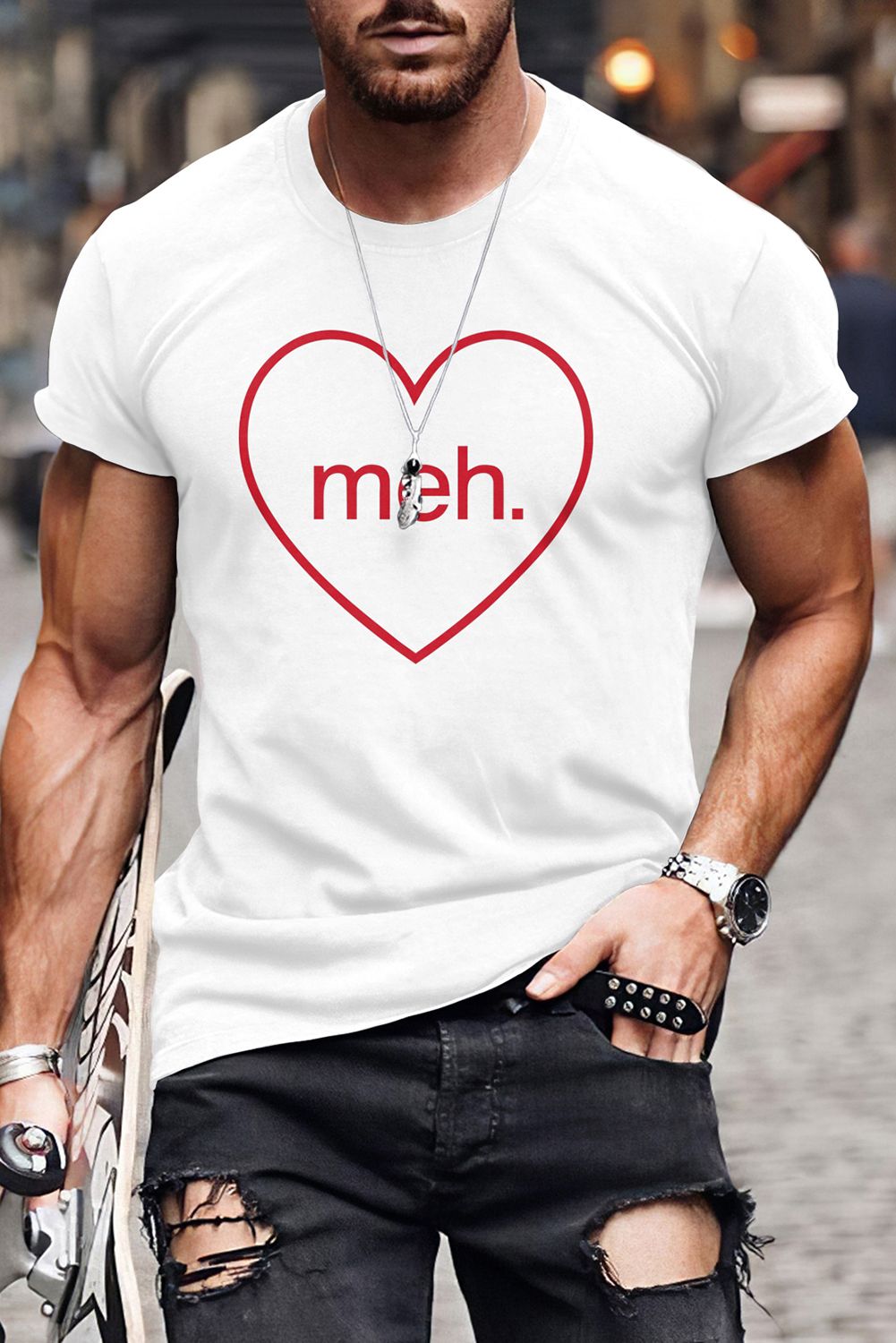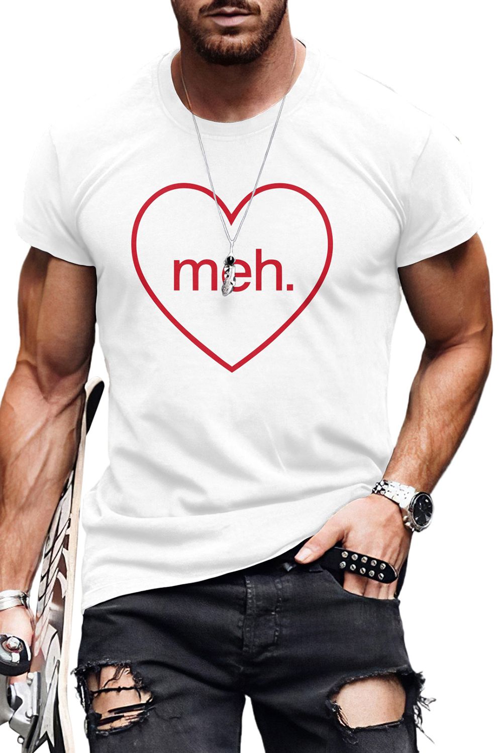 Black meh. Heart Shaped Print Crewneck Short Sleeve Men's Tee