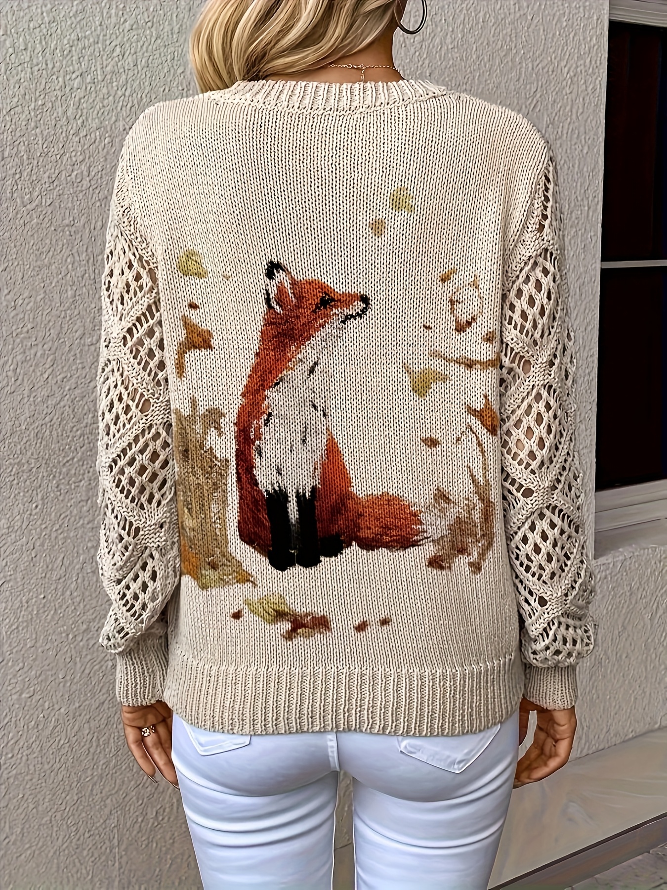 [Elegant Bohemian Top] Bohemian Elegant V-Neck Long Sleeve Top for Women | Animal Print, All-Season Versatile Pullover Sweater - Ideal for Office, Streetwear, Home, and Travel