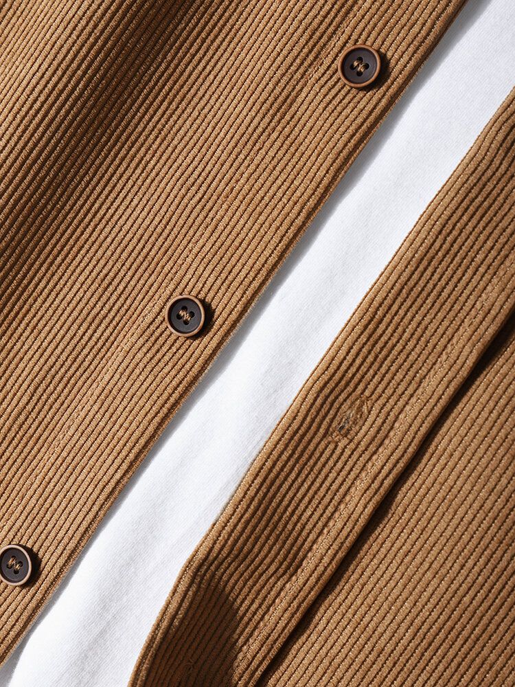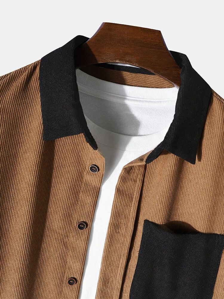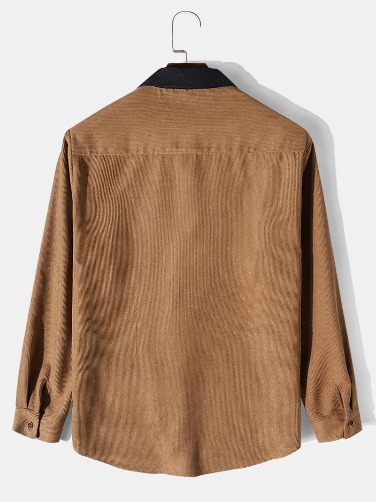 Mens Corduroy Contrast Collar Button Up Long Sleeve Shirts