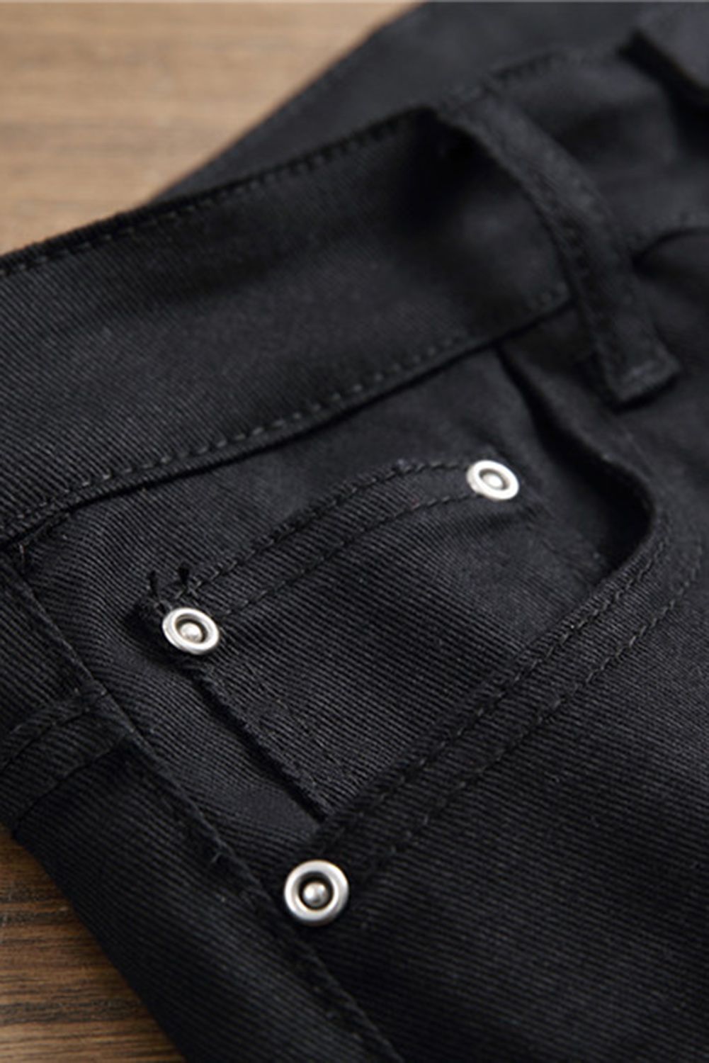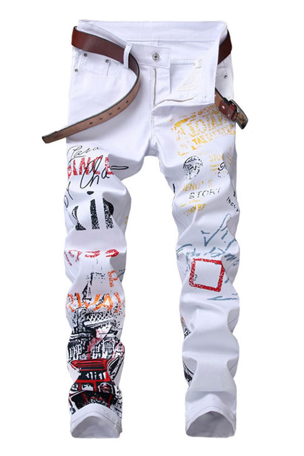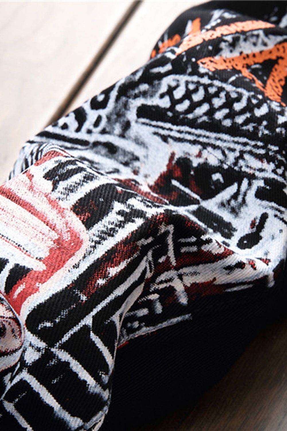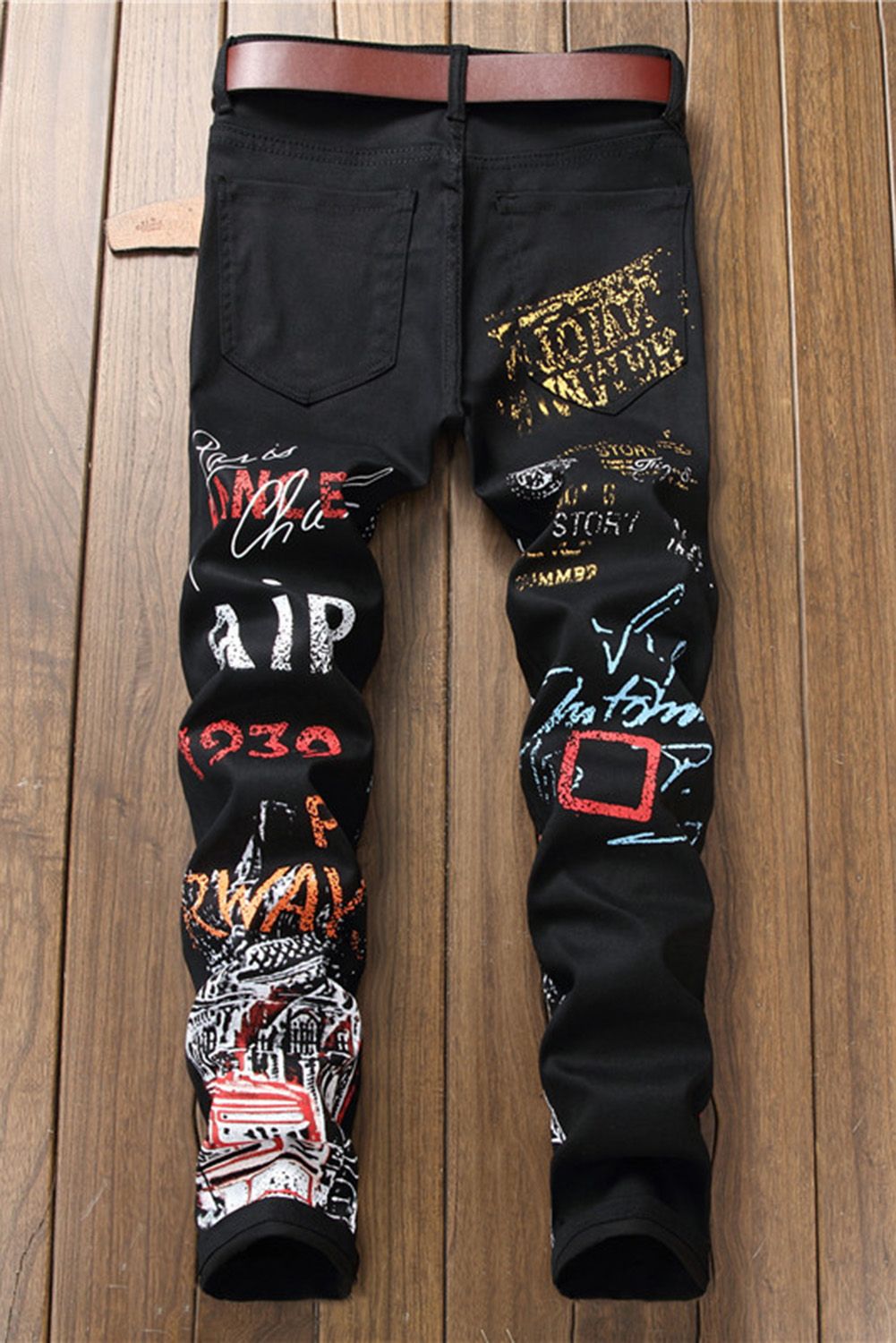 Black Letter Printed Buttoned Straight Leg Men's Jeans