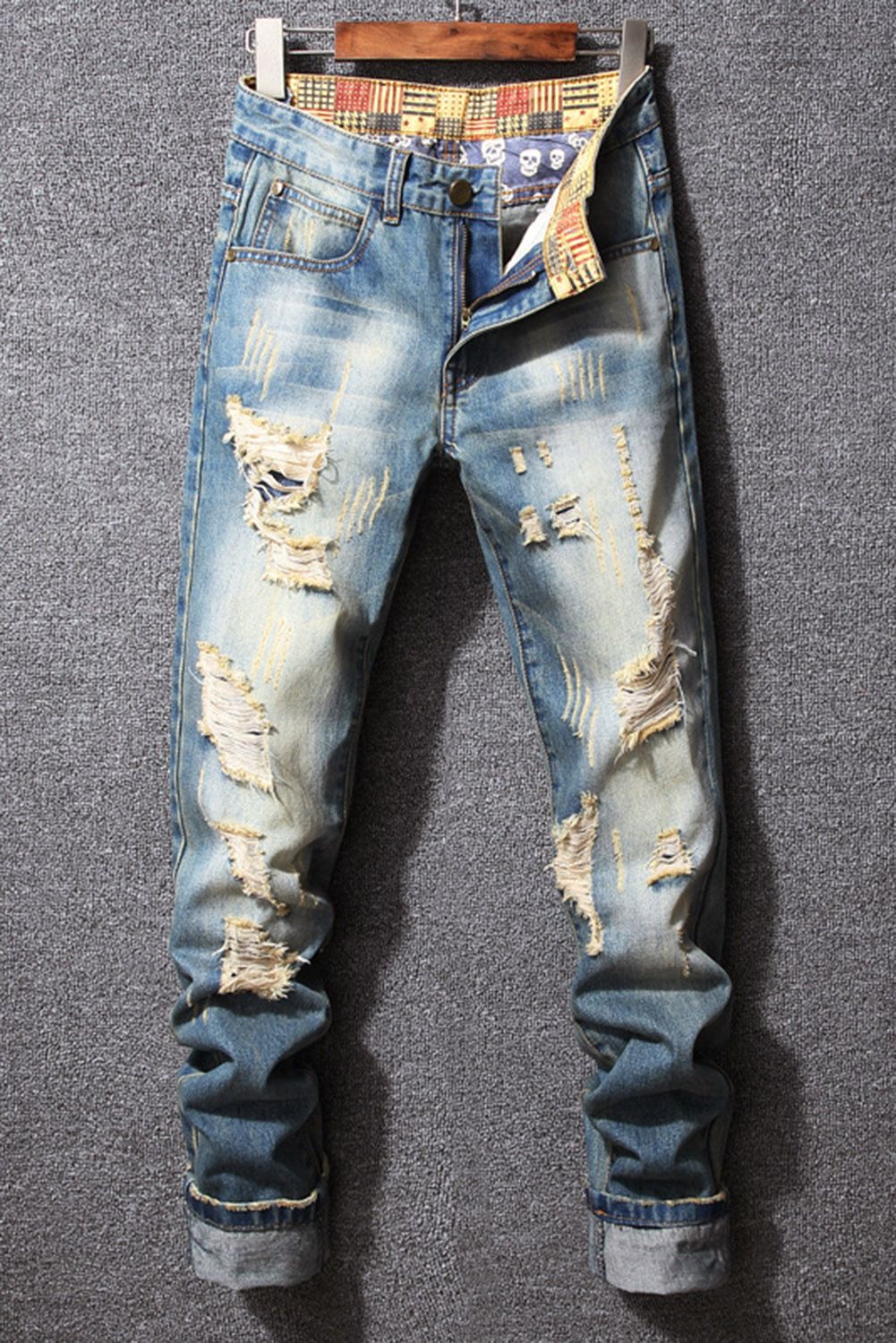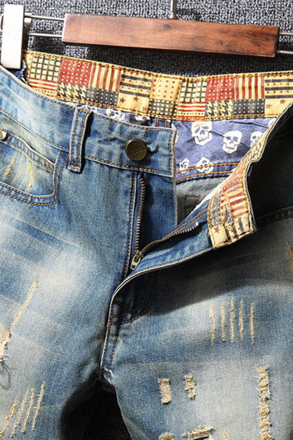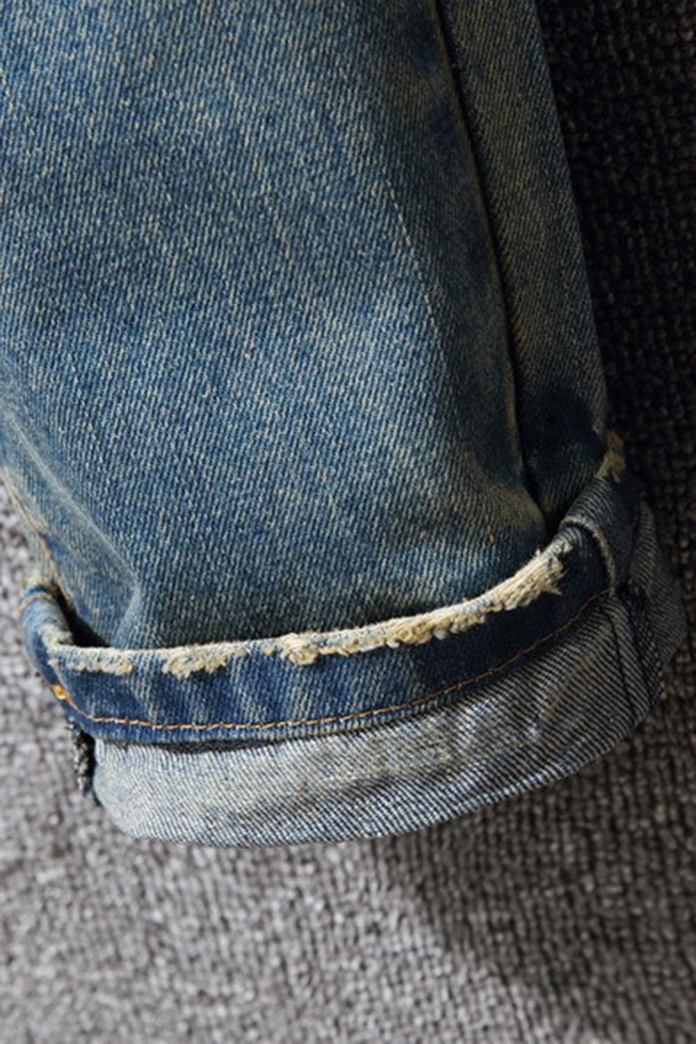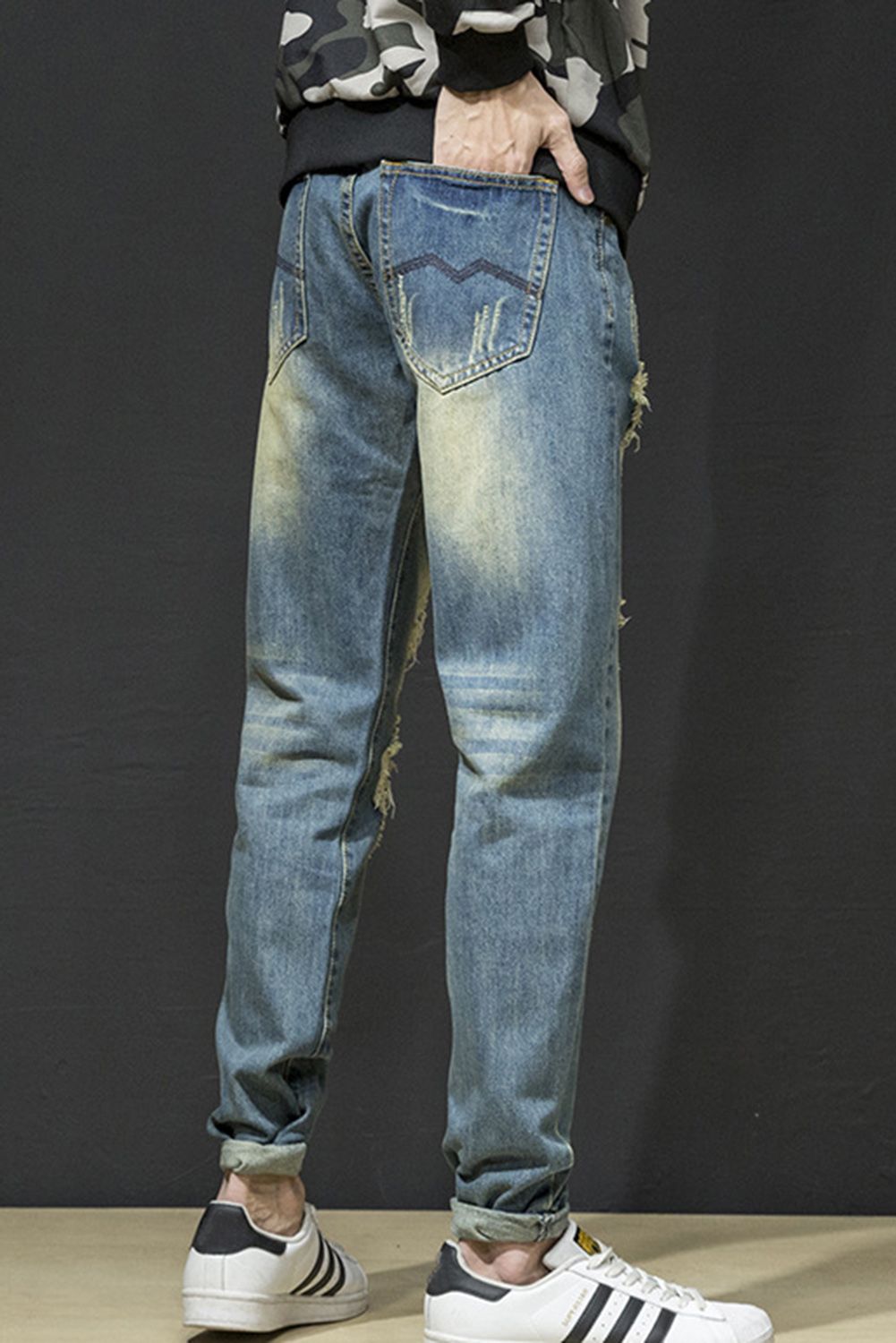Distressed Wash Buttoned Straight Leg Men's Jeans