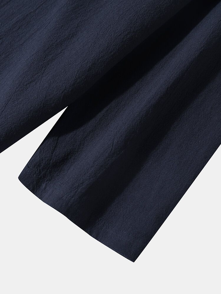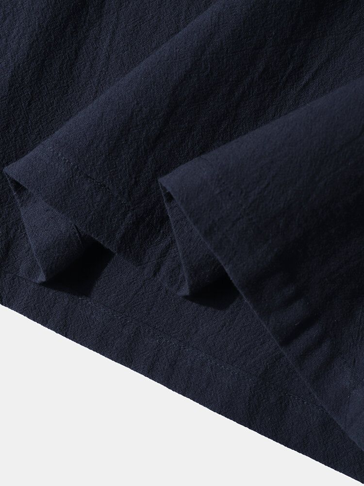 Mens Solid Color Texture Button Design Cotton Long Sleeve T-Shirts