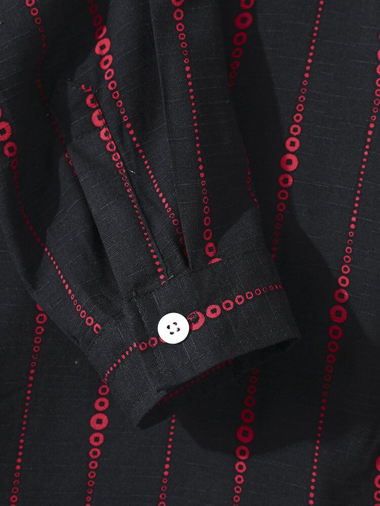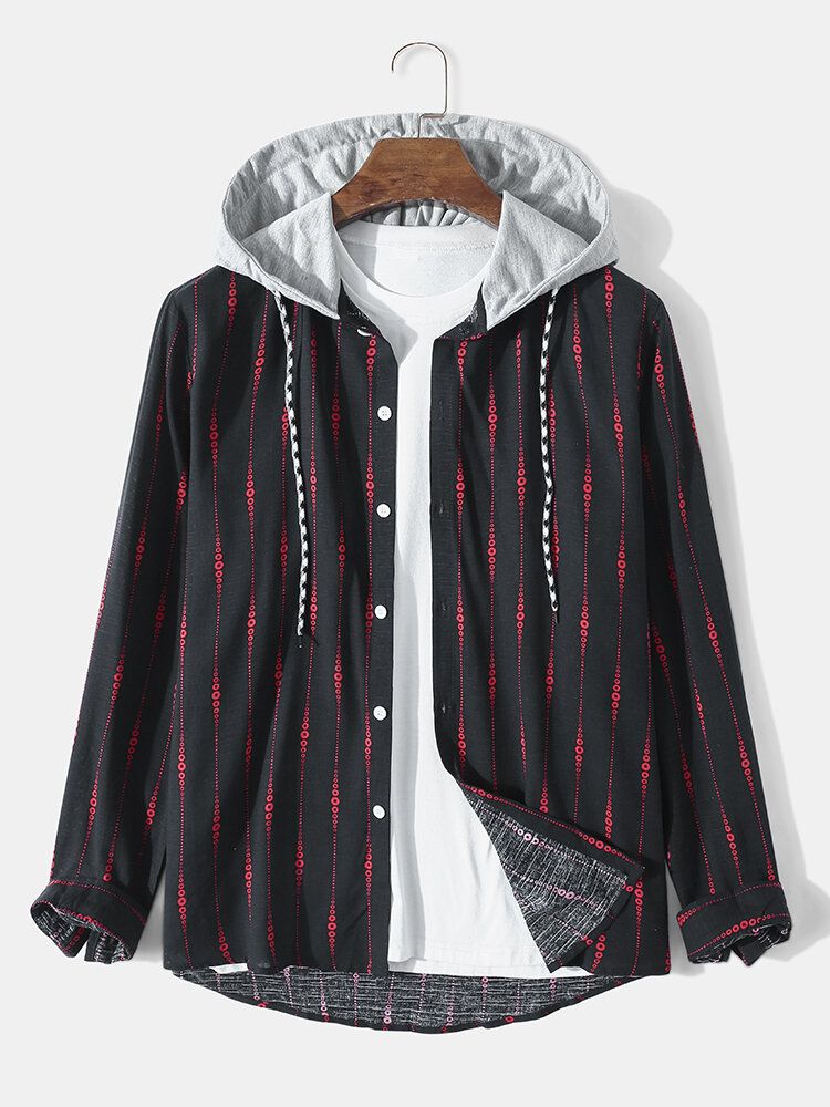 Mens Striped Geometric Print Button Up Cotton Drawstring Hooded Shirts