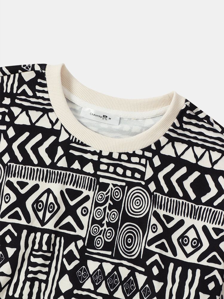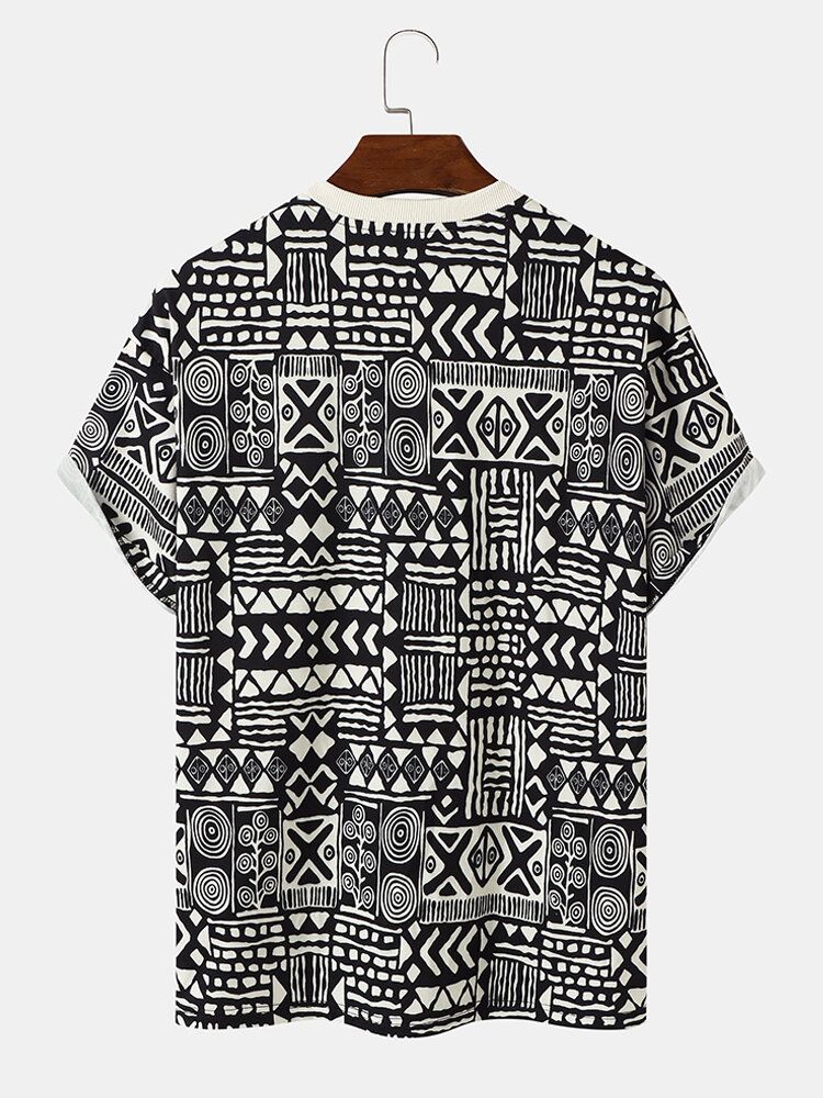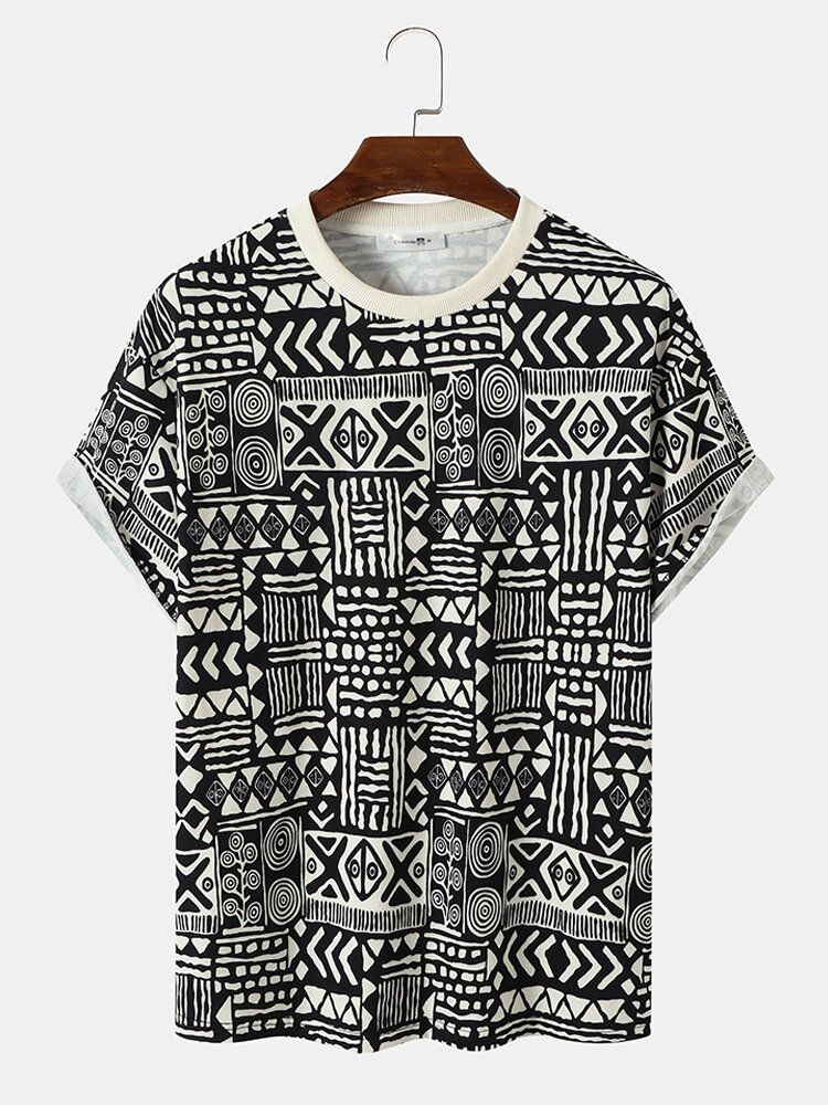 Mens Ethnic Ornament Scarf Printed Short Sleeve Skin Friendly T-Shirts