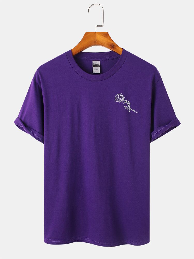 Mens Rose Chest Print Short Sleeve 100% Cotton T-Shirt