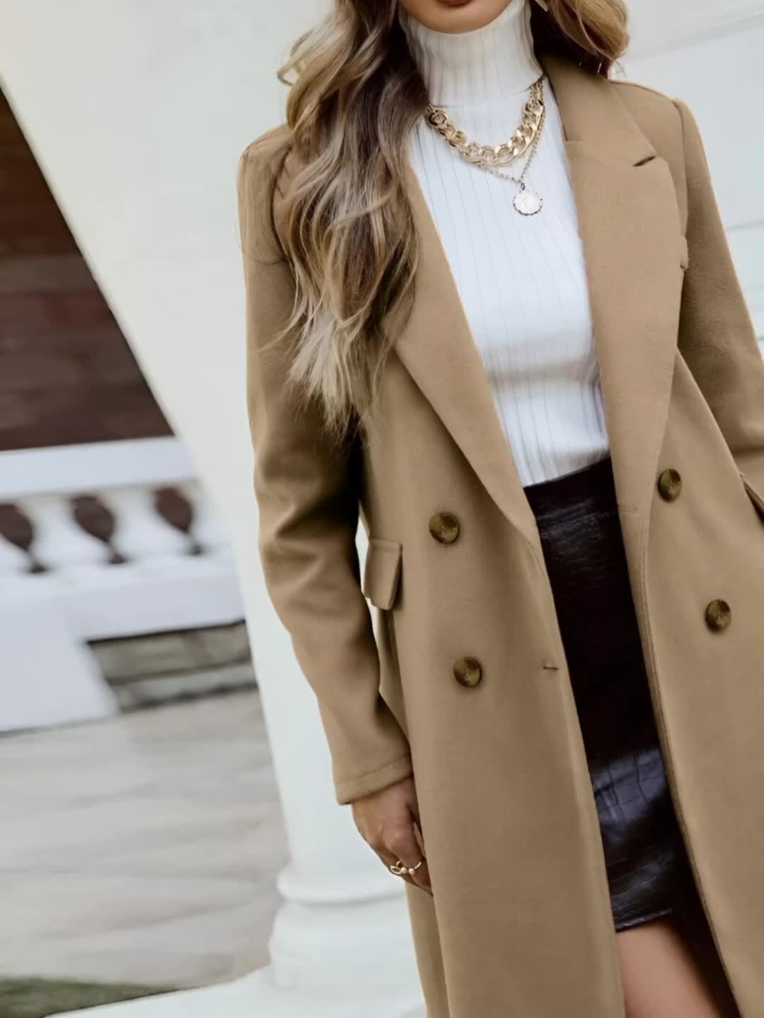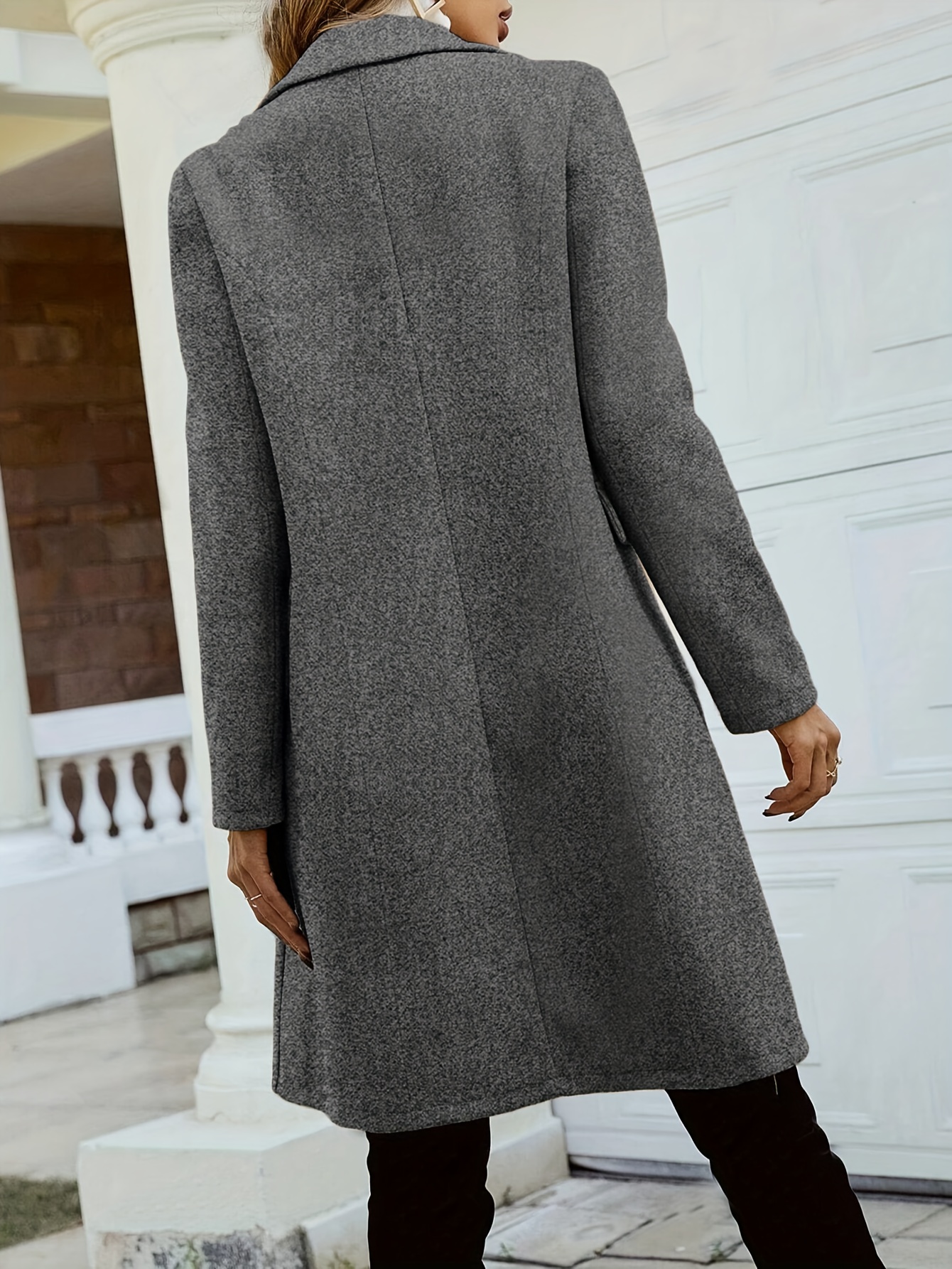Women'S Chic Tweed Coat with Large Buttons - Long Winter Coat, Button-Up Front, Flap Pockets, and Belted Waist, Perfect for Fall and Winter, Winter Outerwear | Belted Waist Coat | Structured Design