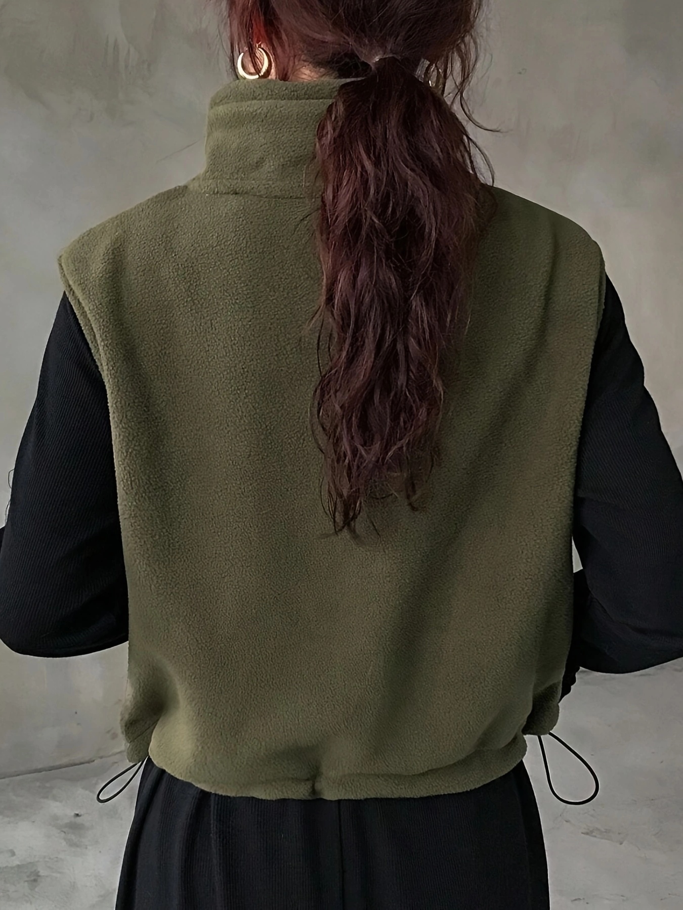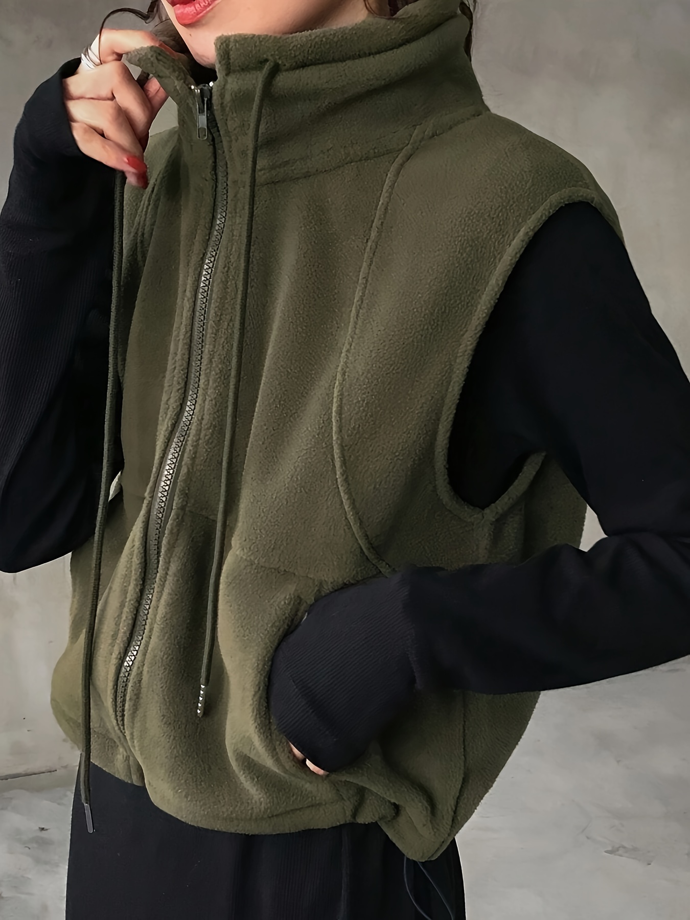 Women's Elegant High-Neck Sleeveless Zipper Jacket - Solid Color Olive Green Winter Coat, Full-Zip Closure, Structured Non-Stretch Design for Fall & Winter, Versatile Outerwear for Casual & Formal Occasions