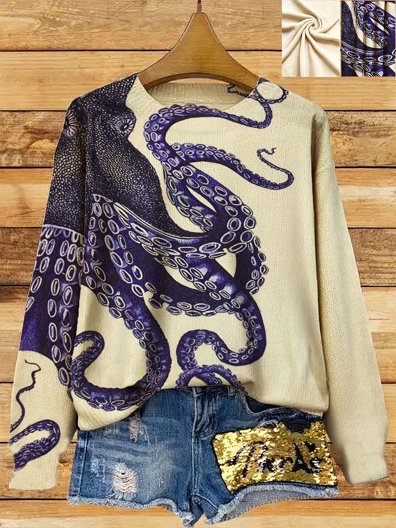 Warning: filesize(): stat failed for /www/wwwroot/www.vivadressstore.com/storage/cache/cache.may_advanced_option_product_.1768455713 in /www/wwwroot/www.vivadressstore.com/storage/modification/system/library/cache/file.php on line 32Warning: fread(): Length parameter must be greater than 0 in /www/wwwroot/www.vivadressstore.com/storage/modification/system/library/cache/file.php on line 32 Women's Sweater - Long Sleeve Pullover Sweater with Navy Blue Octopus Tentacle Print, Elegant Casual Chic Sweater for Everyday Formal Outfits, Versatile Clothing, Unique Design, Soft Texture, Printed Top, Trend Followers - from category Women's Sweaters (