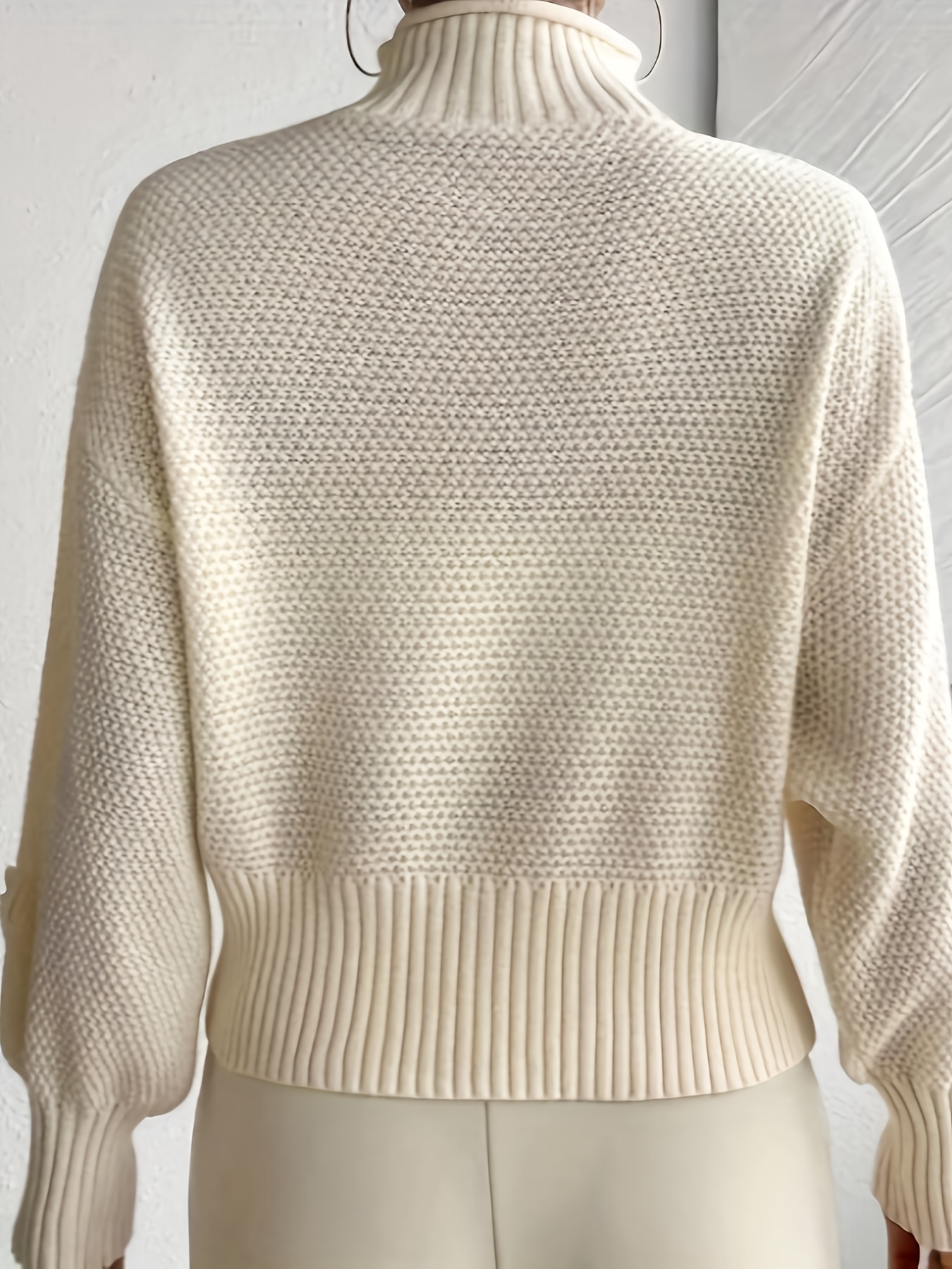 Elegant High-Neck Sweater with 3D Floral Embellishments – Soft, Plush, and Comfortable Fit, Perfect for Fall/Winter, Ideal for Creating a Serene Atmosphere, Casual Wear | Elegant Highneck | Construction, Sweater Dress