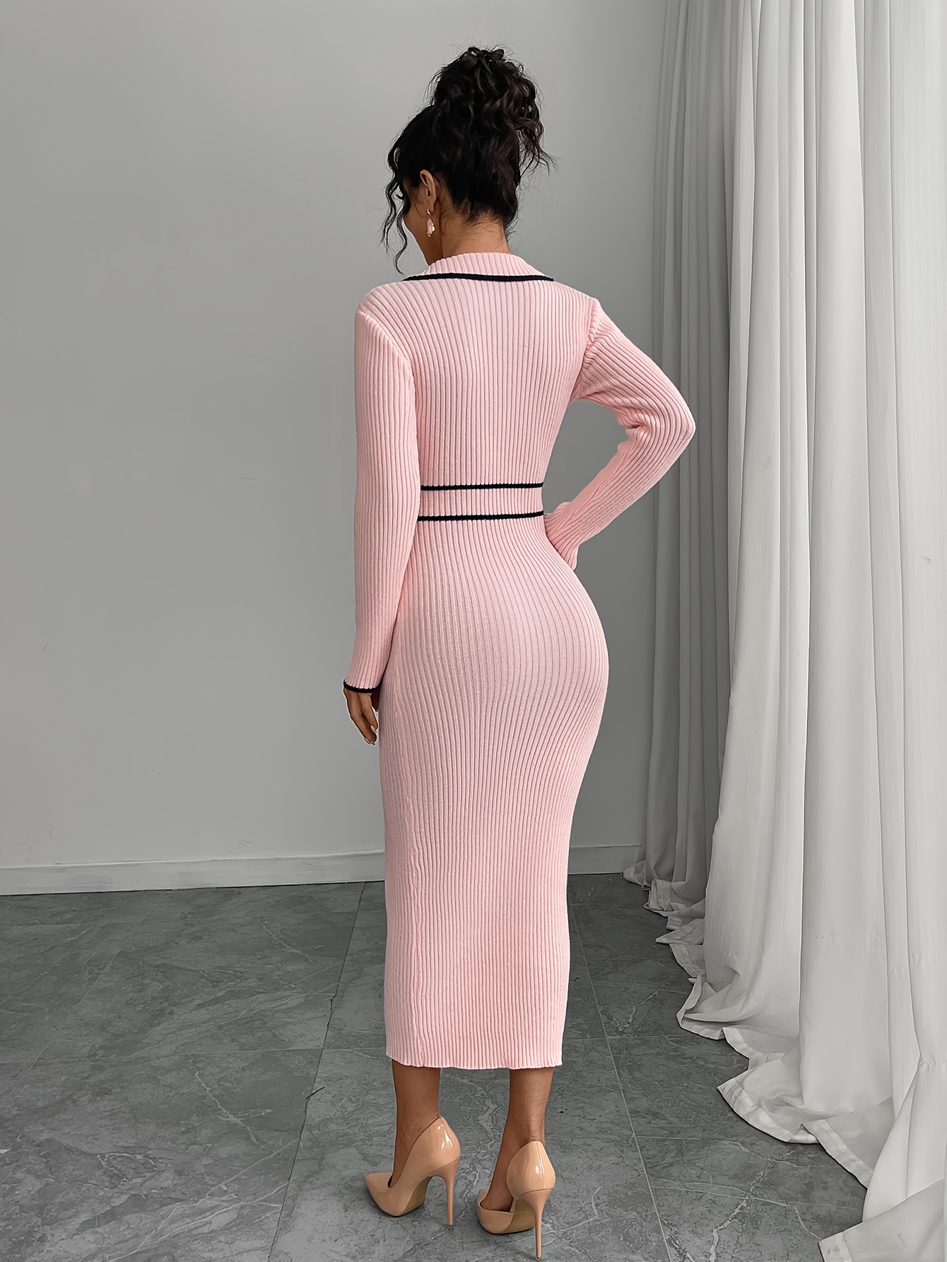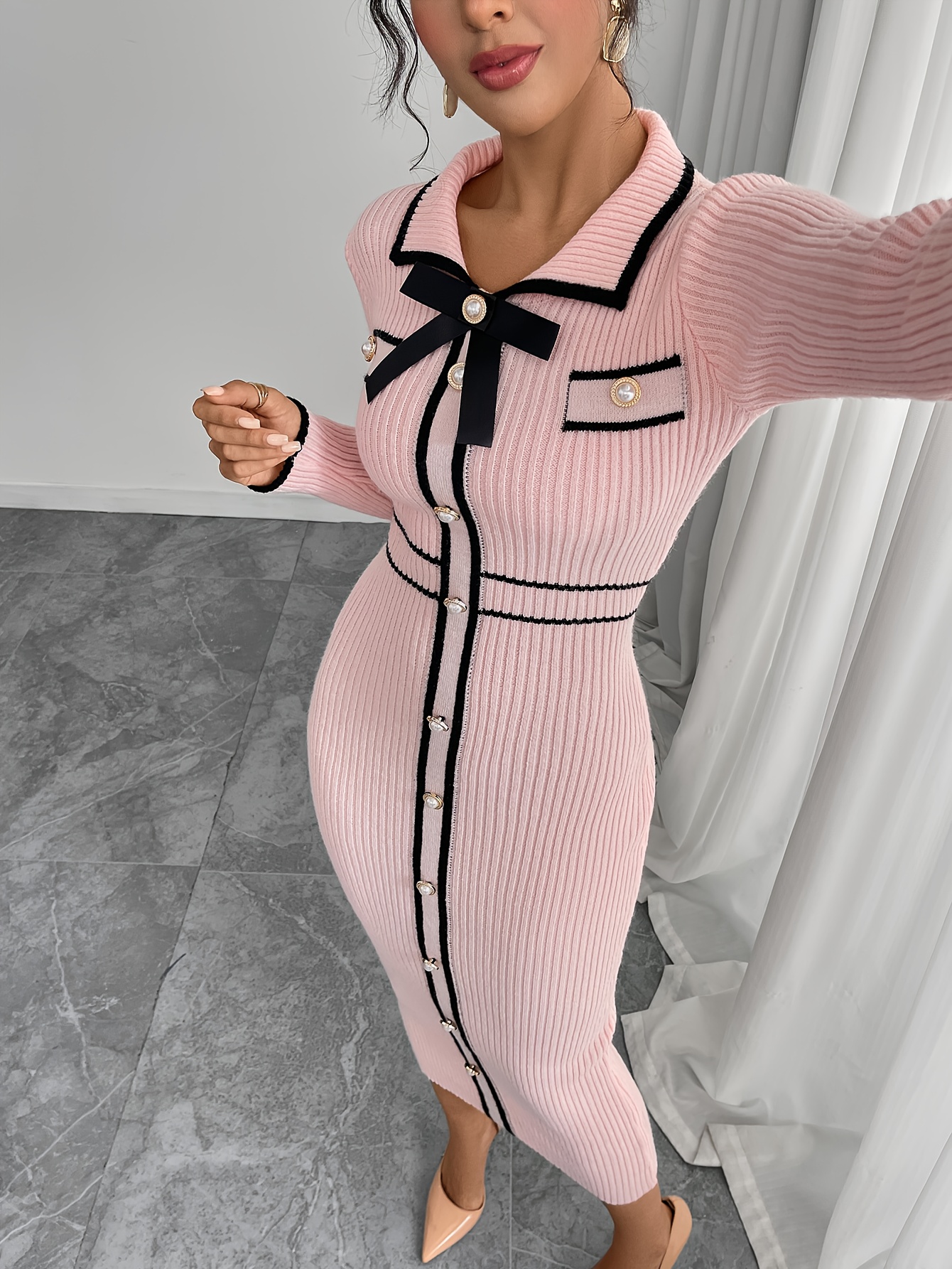 Women'S Elegant Dress - Soft Pink Formal & Casual Outfit with Button Front, Flattering Fit for Office, Parties, Tea Dates - Chic Women'S Clothing, Office Attire, Sophisticated Design, Premium Quality, Bow Detail, Fashion Lovers