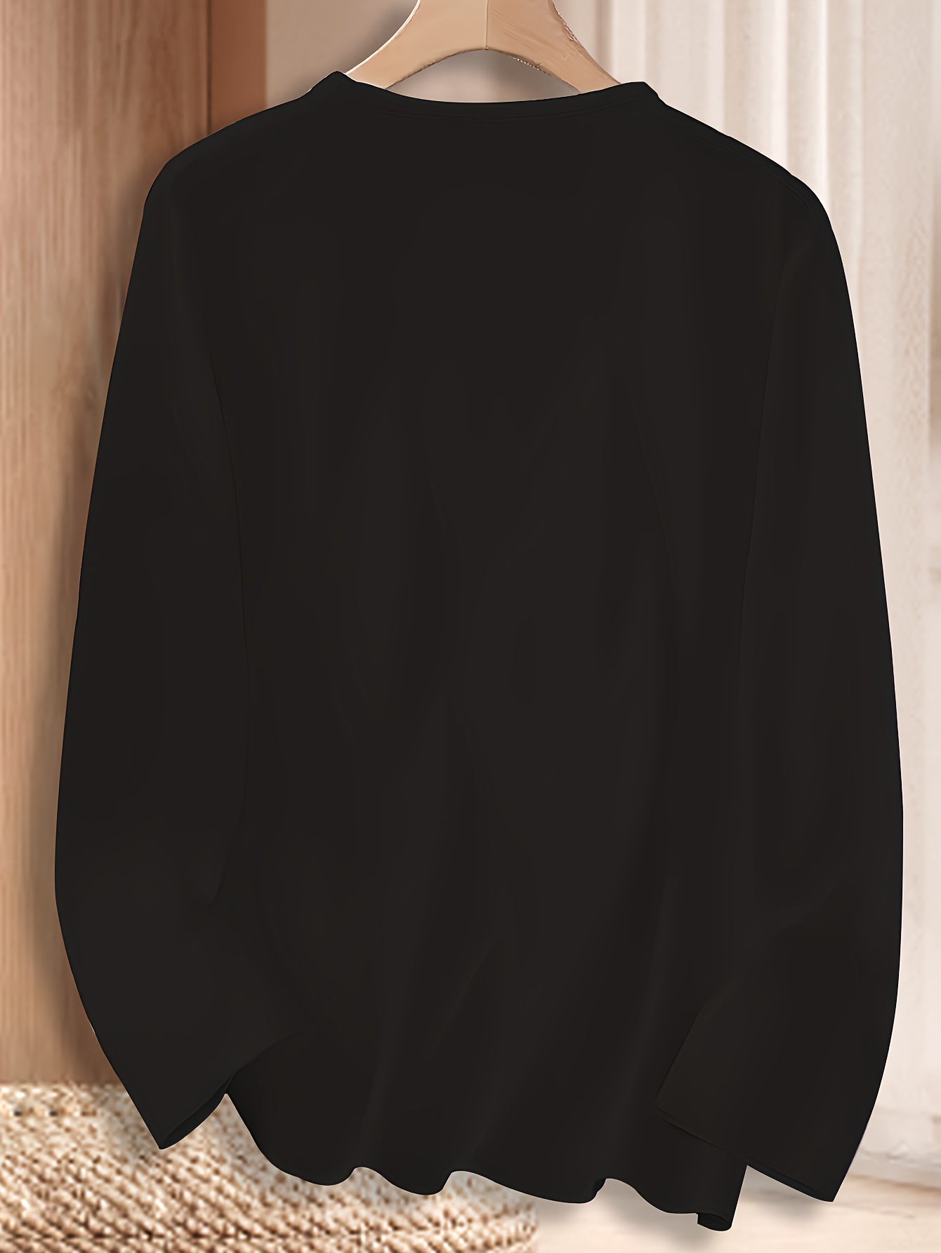 Chic Geometric Print Long Sleeve T-Shirt for Women - Casual Crew Neck, Soft Polyester, Perfect for Fall & Winter