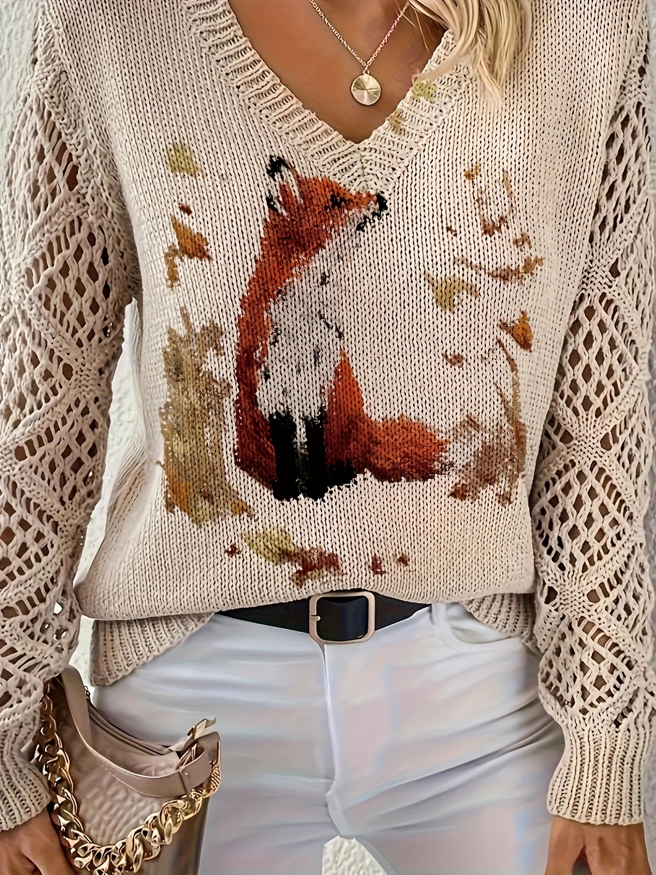 [Elegant Bohemian Top] Bohemian Elegant V-Neck Long Sleeve Top for Women | Animal Print, All-Season Versatile Pullover Sweater - Ideal for Office, Streetwear, Home, and Travel