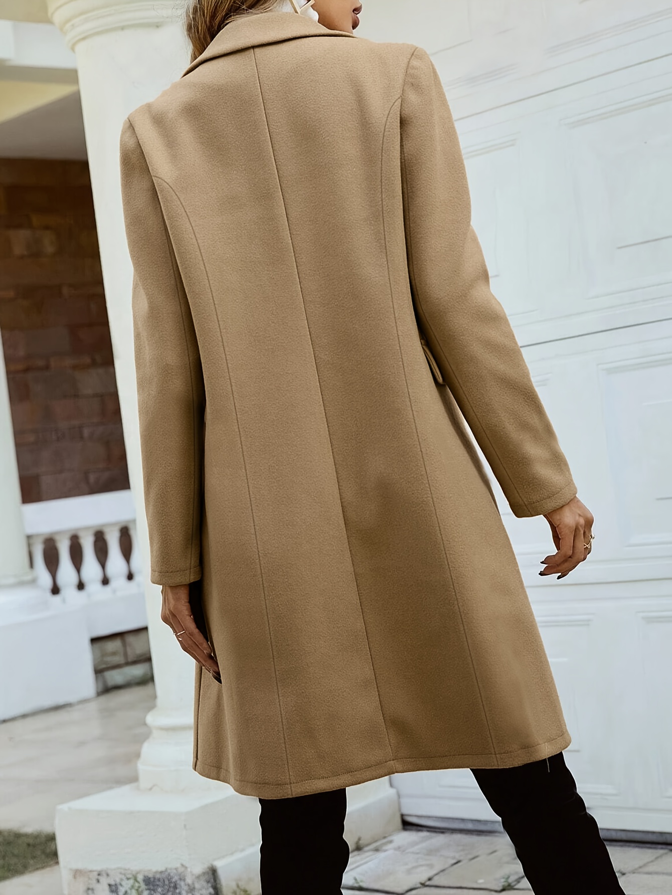 Women'S Chic Tweed Coat with Large Buttons - Long Winter Coat, Button-Up Front, Flap Pockets, and Belted Waist, Perfect for Fall and Winter, Winter Outerwear | Belted Waist Coat | Structured Design