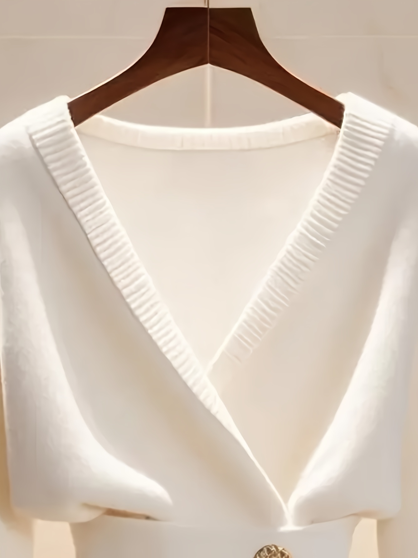 Warning: fread(): Length parameter must be greater than 0 in /www/wwwroot/www.vivadressstore.com/storage/modification/system/library/cache/file.php on line 32 Women's White V-Neck Adjustable Belted Cardigan with Golden Buckle Detail - Soft Long Sleeve Elegant Casual Layering Pullover for Spring and Autumn, Fashionable Weekend Wear - from category Women's Sweaters (Your Store)